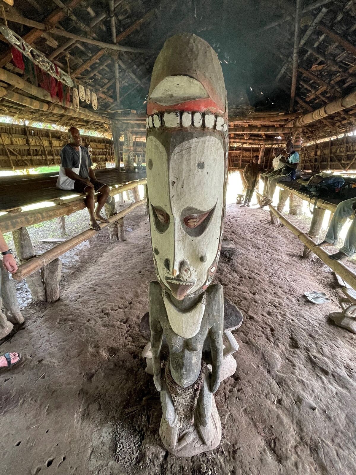 Uvnitř tambaramu. V centru "židlička", na níž se provádějí iniciační úkony (např. skarifikace)