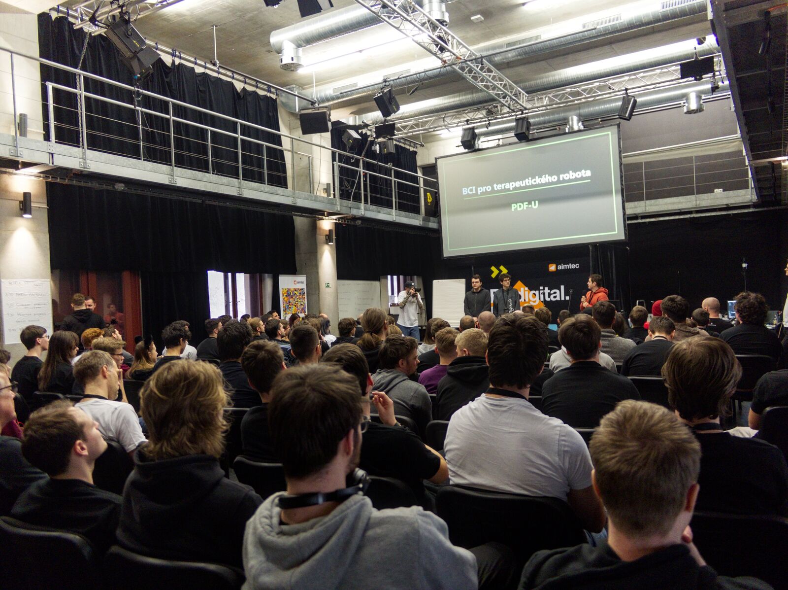 “Jsem vděčný kolegům mentorům a hrdý na naše studenty, ať už jejich týmy vyhrály nebo se “jen” něco nového naučili – energie intenzivního tvoření a setkávání byla inspirující a nakažlivá,” shrnuje svoje zkušenosti z návštěv již několika Aimtec hackathonů vedoucí KIV Přemysl Brada. “V naší laboratoři snímáme, vyhodnocujeme a využíváme elektrickou aktivitu mozku také k rehabilitačním účelům”, dodal Roman Mouček, jeden z mentorů KIV. “Pro ovládání simulovaného terapeutického robota tyto technologie a znalosti využil ve svém projektu například tým PDF-U, a podíl studentů KIV na vytvoření nástrojů pomáhajících lidem s postižením a jejich rodinám mne velmi těší. Důležitá je i multidisciplinarita projektů, protože všem zapojeným pomáhá vycházet ven ze svých úzce oborových bublin.”