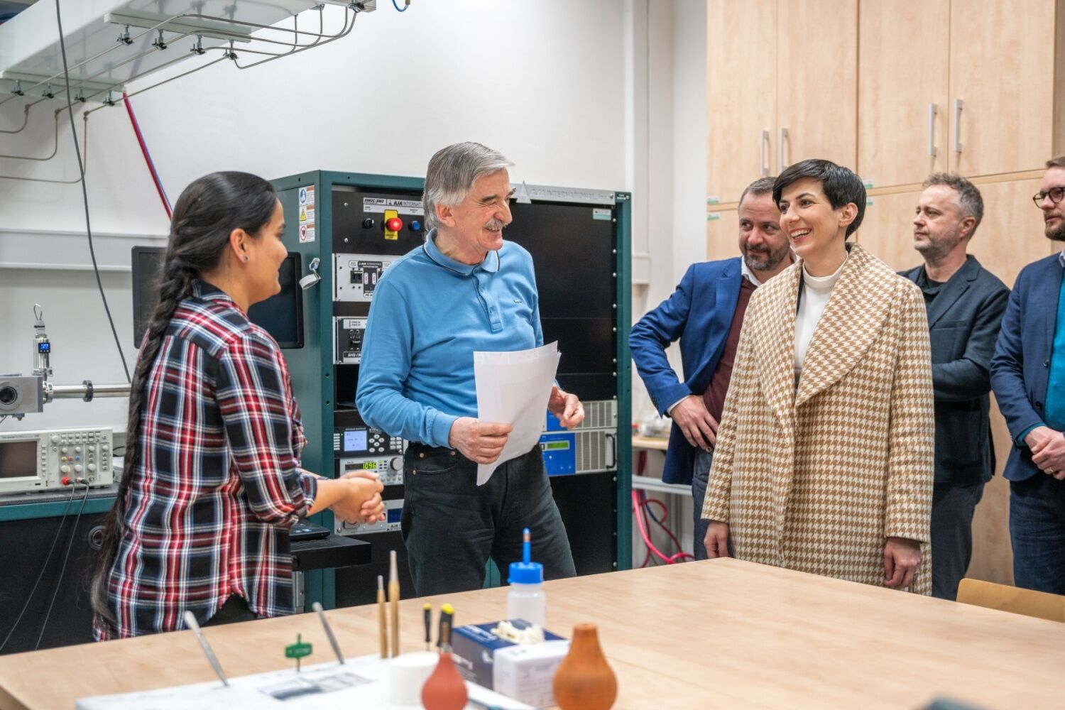 Po setkání s rektorem navštívila předsedkyně Markéta Pekarová Adamová společně s poslanci výzkumné centrum NTIS Fakulty aplikovaných věd, kde se seznámila s vývojem tzv. chytrých oken, která v závislosti na venkovní teplotě dokáží řídit průchod tepla do budovy. Díky termochromickém efektu, který zajišťuje velmi tenká vrstva jednoho typu oxidu vanadičitého se specifickou strukturou, se okna při určité teplotě obrazně řečeno uzavřou pro tepelné spektrum slunečního záření a v budově se udržuje tepelný komfort. Projekt, který v budoucnu výrazně sníží náklady na klimatizaci, představil prof. Jaroslav Vlček. Právě jeho tým se tomuto celospolečensky důležitému tématu, založenému na šetření energie pomocí pokročilých úprav povrchu okenních tabulí, věnuje.