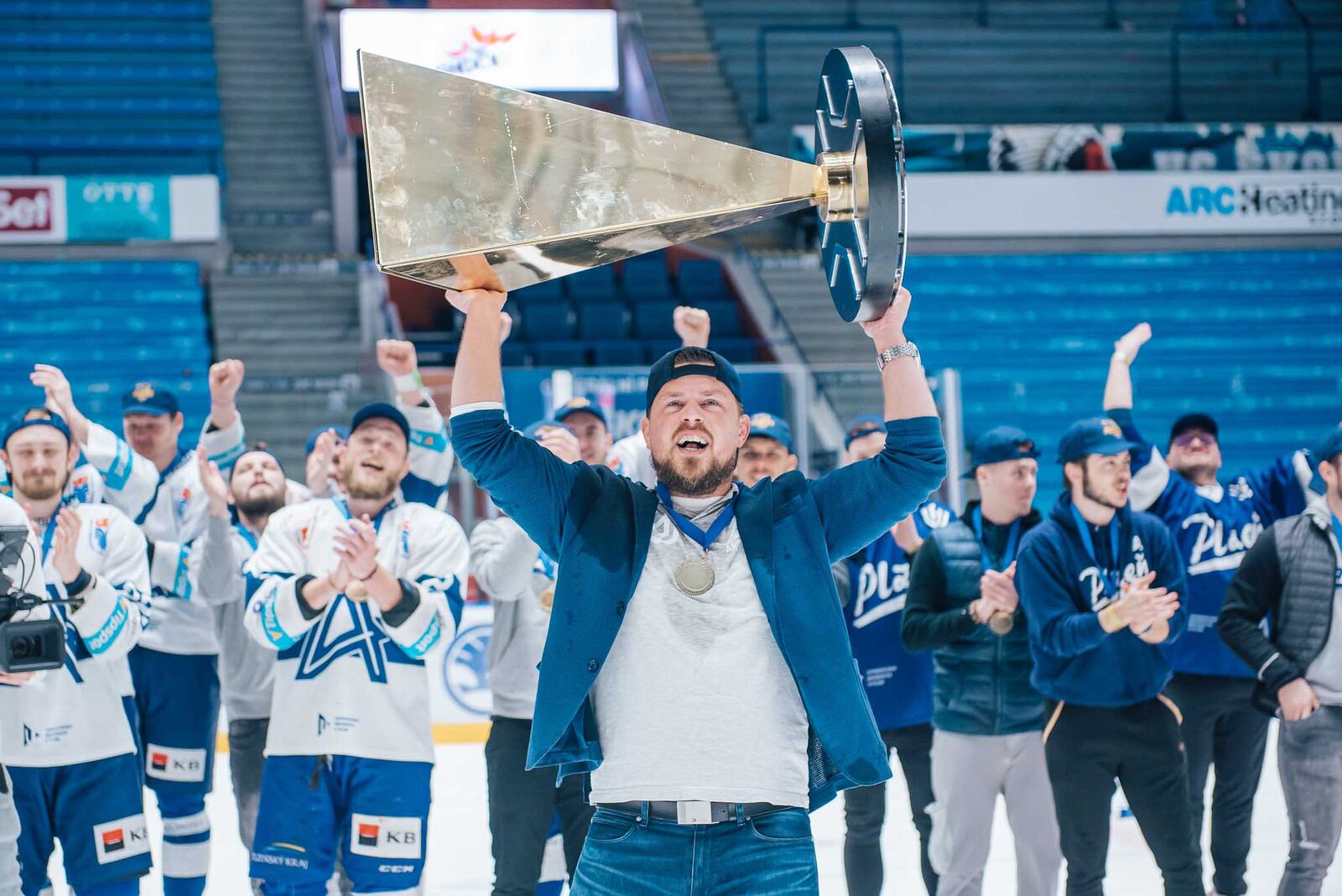 Kotel plzeňských fanoušků Modrý nebe pak všechny hráče, kouče Tomáše Ceperka a další členy zlatého týmu dlouho odměňoval bouřlivými ovacemi. Speciálního aplausu se dočkal i dojatý David Prachař, který za Akademiky nastoupil naposledy.