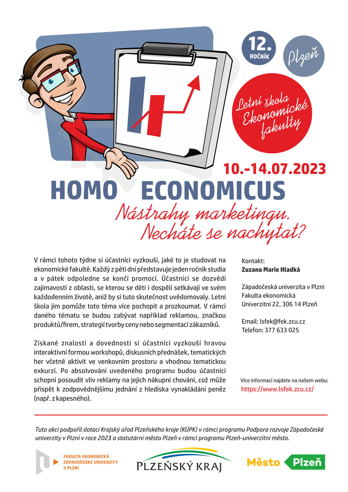 Během týdne si účastníci vyzkouší, jaké to je studovat na ekonomické fakultě. Každý z pěti dní představuje jeden ročník studia a v pátek odpoledne se končí promocí. Účastníci se dozvědí zajímavosti z oblasti, se kterou se děti i dospělí setkávají ve svém každodenním životě, aniž by si tuto skutečnost uvědomovaly. Letní škola jim pomůže toto téma více pochopit a prozkoumat. V rámci daného tématu se budou zabývat například reklamou, značkou produktů/firem, strategií tvorby ceny nebo segmentací zákazníků.