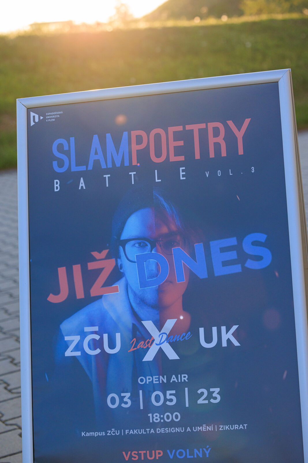 ZČU slaví poetický hattrick! Potřetí, a tentokrát pod širým nebem, se kampus Západočeské univerzity v Plzni stal dějištěm vysokoškolské bitvy ve slam poetry. Při Slam Poetry Battle vol. 3 se střetly týmy studentů či absolventů ZČU a Univerzity Karlovy… A opět zvítězili domácí.