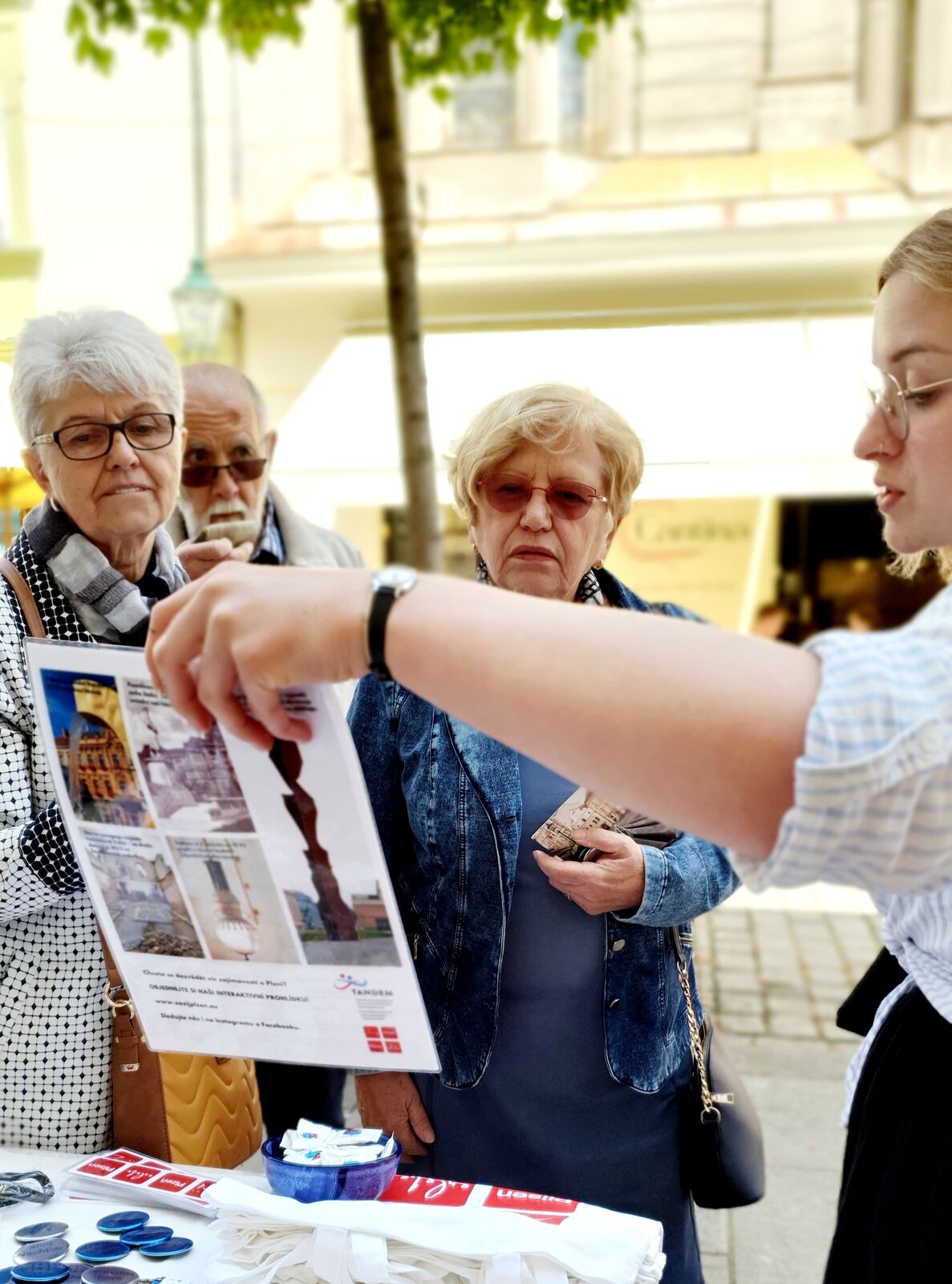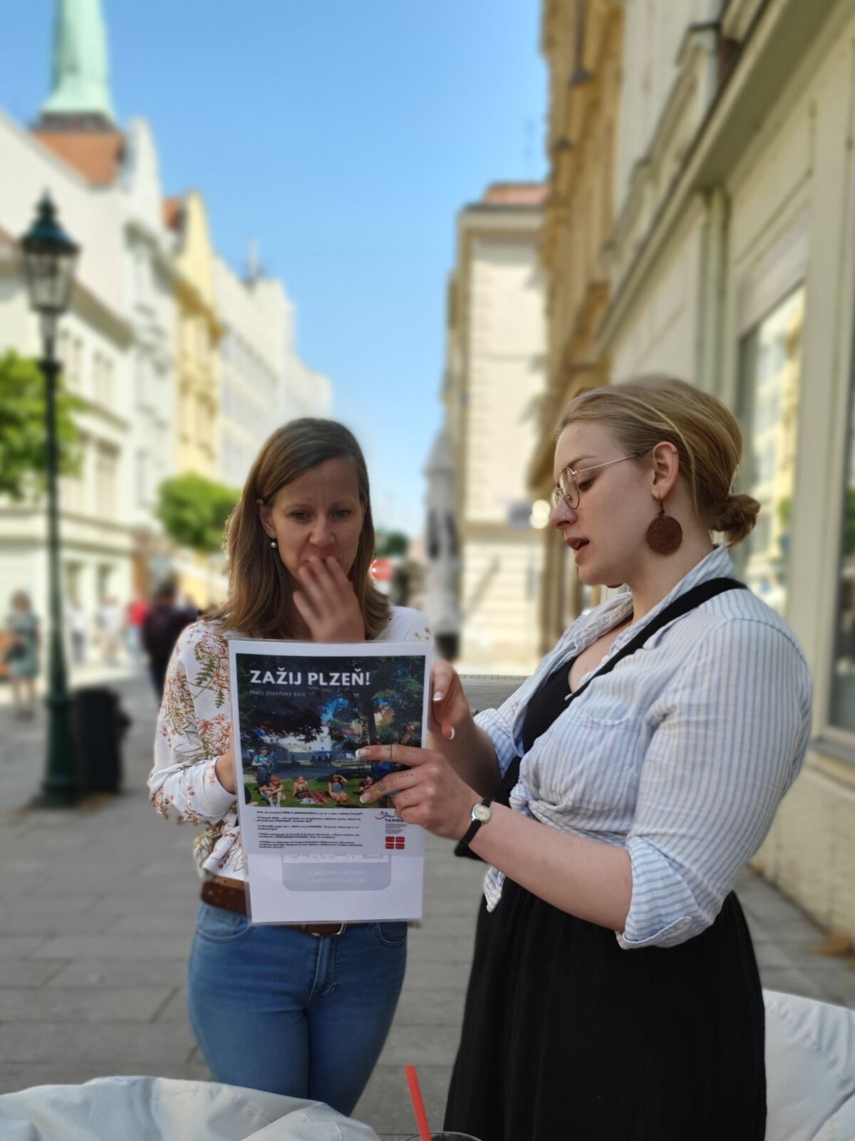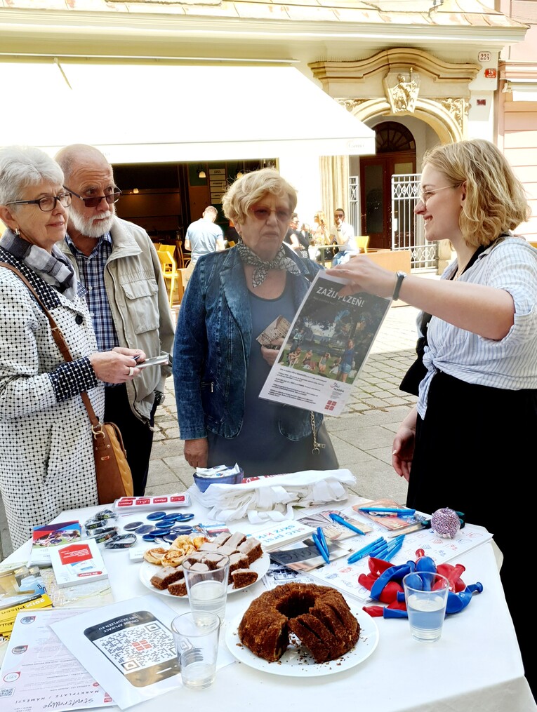 "Představovali jsme interaktivní program Zažij Plzeň!, velký úspěch jsme měli s plzeňskou online stopovačkou," přibližuje náplň akce koordinátorka projektu Veronika Rybová. "Přišli k nám i opravdoví starousedlíci z ulice a vyprávěli své příběhy. Zabýváme se plzeňskými dějinami a poslouchat pamětníky je něco, co nás nabíjí a zároveň nám to ukazuje, že spolupráce s Evropským dnem sousedů má smysl."