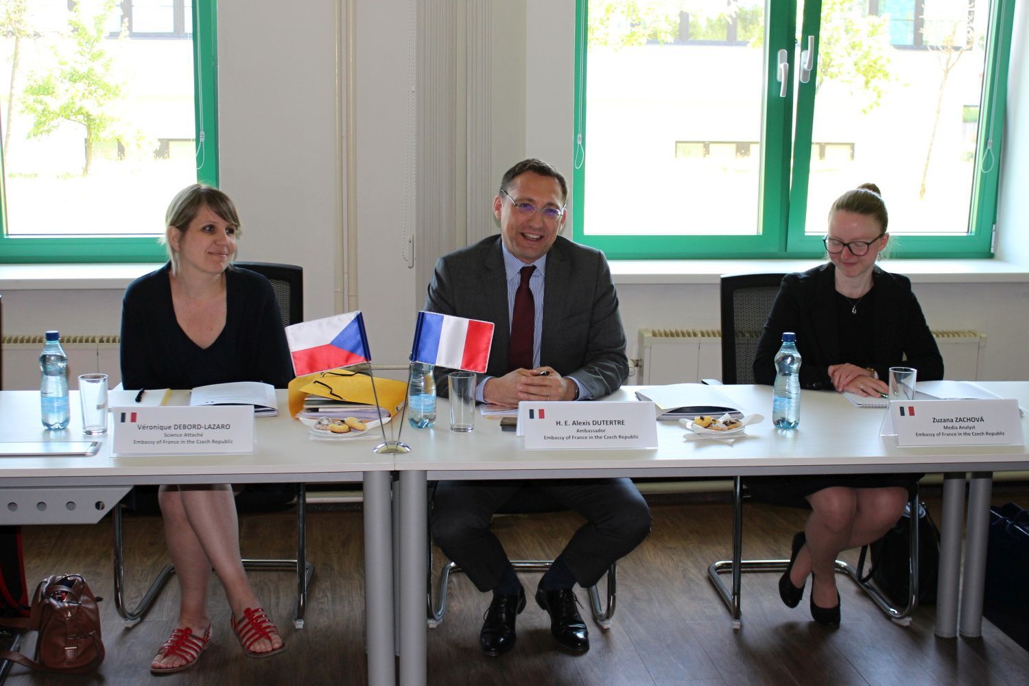 J. E. Alexis Dutertre se zajímal také o výuku a výzkum v oblasti jaderné energetiky, spolupráci s průmyslovými partnery a možnosti rozšíření spolupráce mezi oběma zeměmi v této strategické oblasti. Byl informován o formálním vzniku Aliance pro elektrotechniku a informatiku, která sdružuje všechny elektrotechnické a IT fakulty České republiky a kterou v jednáních zastupuje právě děkan Peroutka.