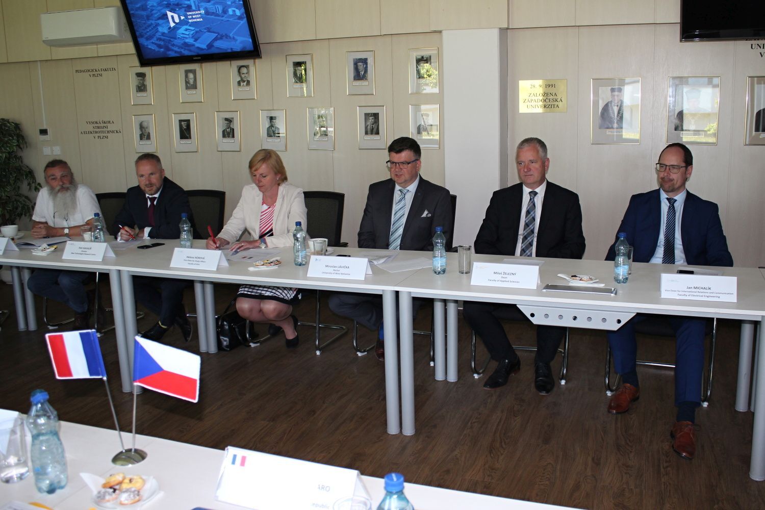 Francouzského velvyslance přivítal rektor Miroslav Lávička společně se zástupci součástí intenzivně rozvíjejících spolupráci s Francií. Setkání se tak zúčastnil děkan Fakulty aplikovaných věd Miloš Železný, ředitel výzkumného centra NTC Petr Kavalíř a společně s ním Didier Sébilleau, výzkumník z Univerzity v Rennes, hostující aktuálně v NTC, dále proděkan Fakulty elektrotechnické Jan Michalík, proděkanka Fakulty filozofické Helena Horová, vedoucí oddělení románských jazyků Ústavu jazykové přípravy Pavla Kocourková a Romana Suchá z International Office. Francouzskou stranu zastupovaly kromě J. E. Alexise Dutertra také atašé pro vědu a vysoké školy Véronique Debord-Lazaro a atašé pro analýzu médií Zuzana Zachová.