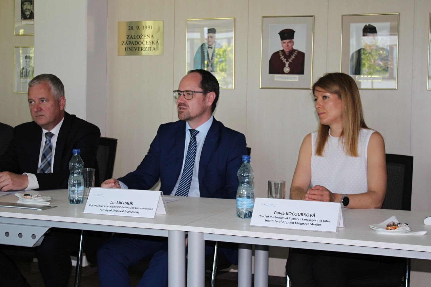 Francouzský velvyslanec velmi ocenil zapojení ZČU do nové evropské aliance EUPeace, jejímž členem je také Université de Limoges. Rektor Miroslav Lávička doplnil, že verdikt Evropské komise ohledně její podpory alianci by měl být znám v červnu.