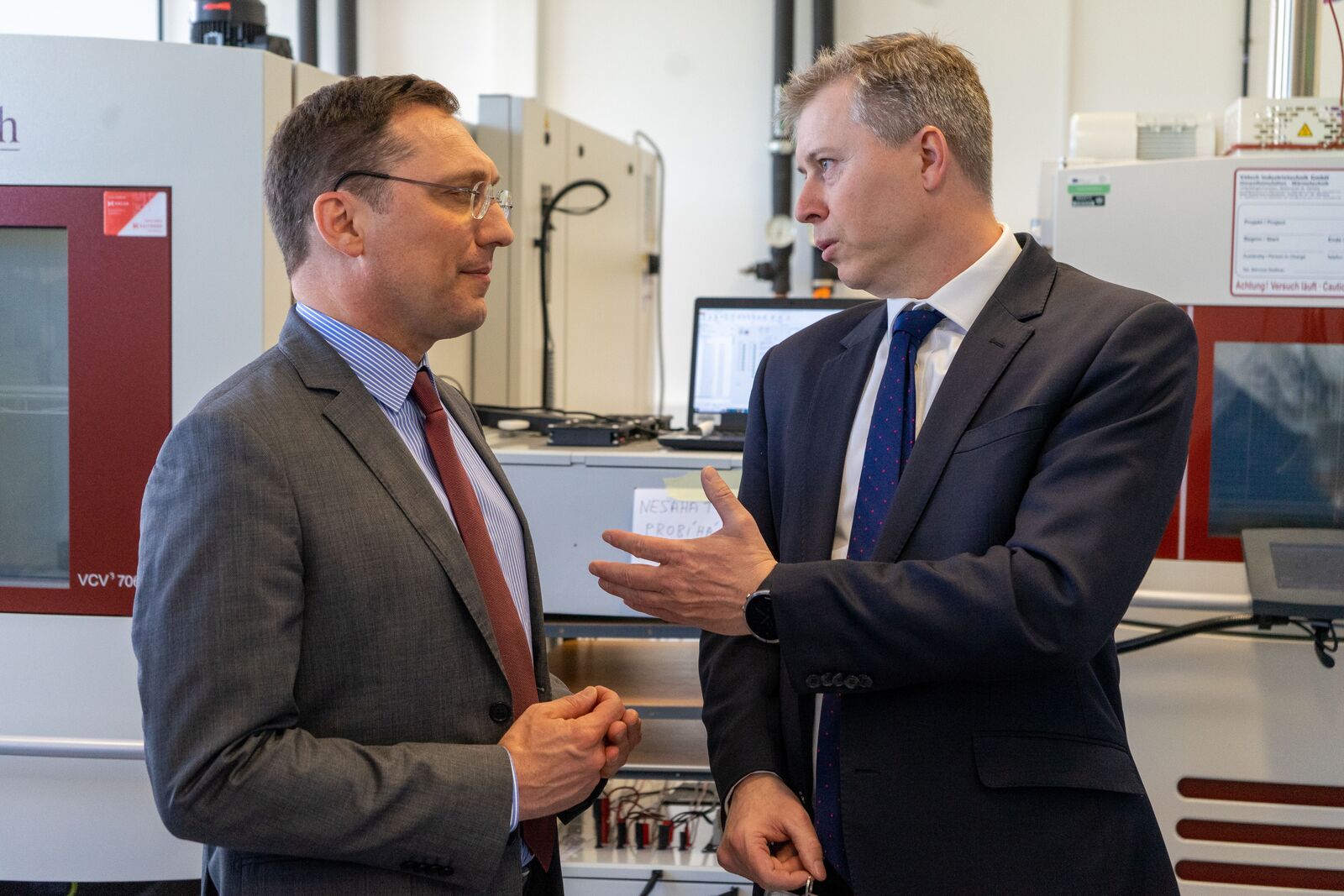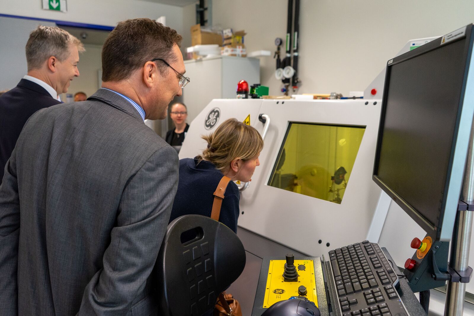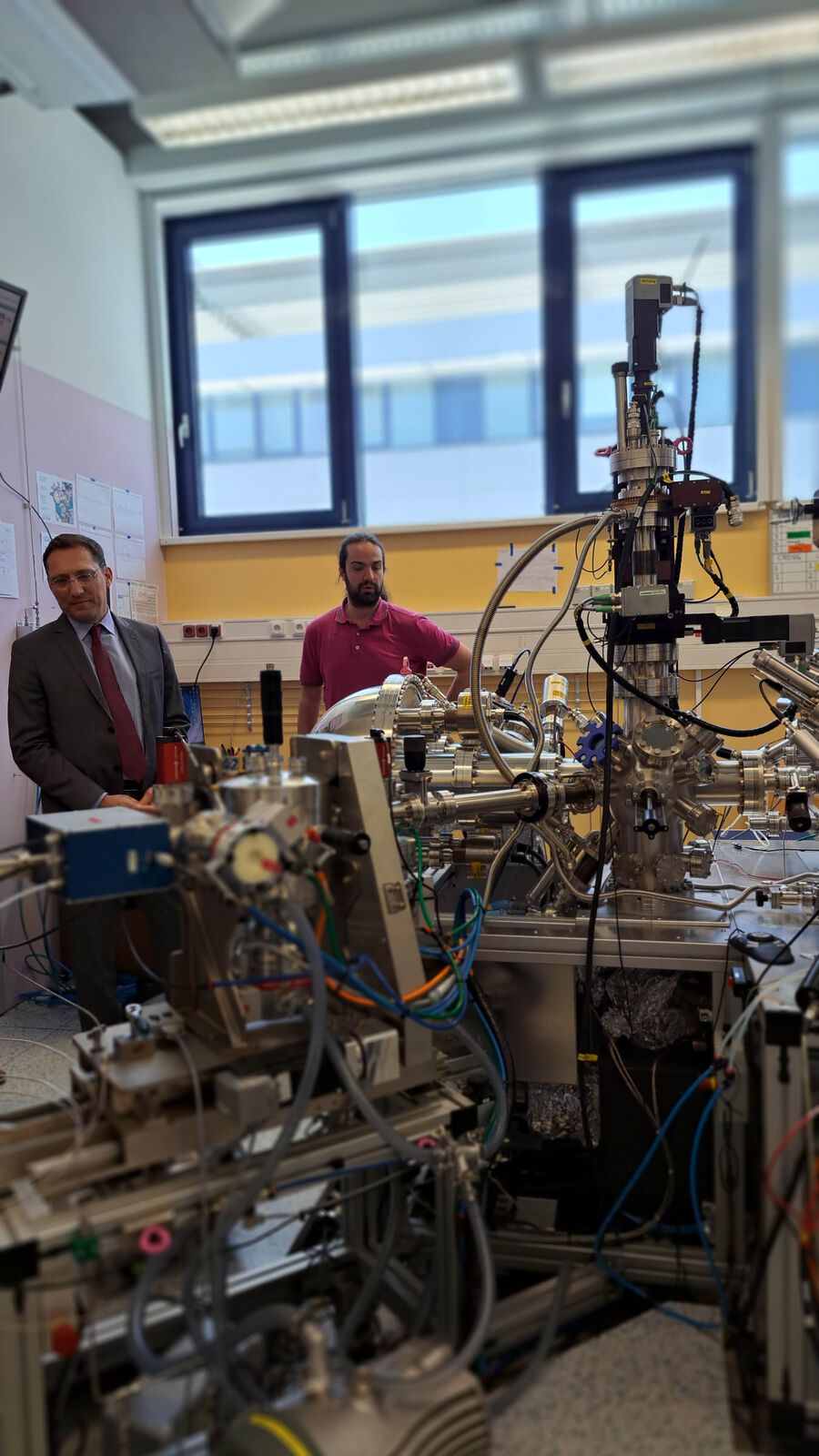 Ve výzkumném centru NTC seznámil velvyslance ředitel Petr Kavalíř s výzkumem týmu pokročilých a kvantových materiálů, kde má NTC dlouhodobou a velmi úspěšnou spolupráci s francouzskými kolegy z CY Cergy Paris Université, z Institut de Physique de Rennes a rovněž s ATTO Lab.