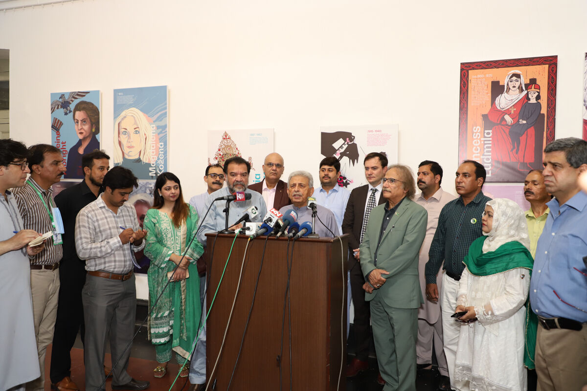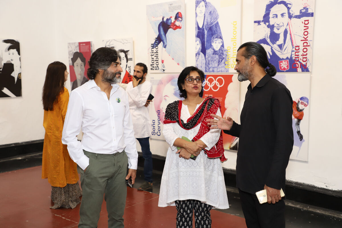 Slavnostní zahájení výstavy České a pákistánské hrdinky na National College of Arts (NCA) v Láhauru v srpnu 2022. 3x foto: NCA