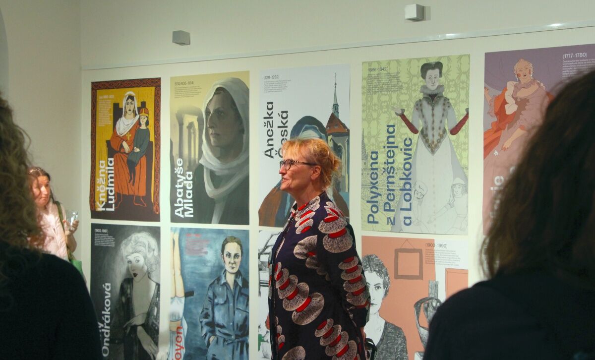 Vernisáž výstavy České hrdinky v plzeňské Galerii Ladislava Sutnara v roce 2020. Autorka projektu Renáta Fučíková.