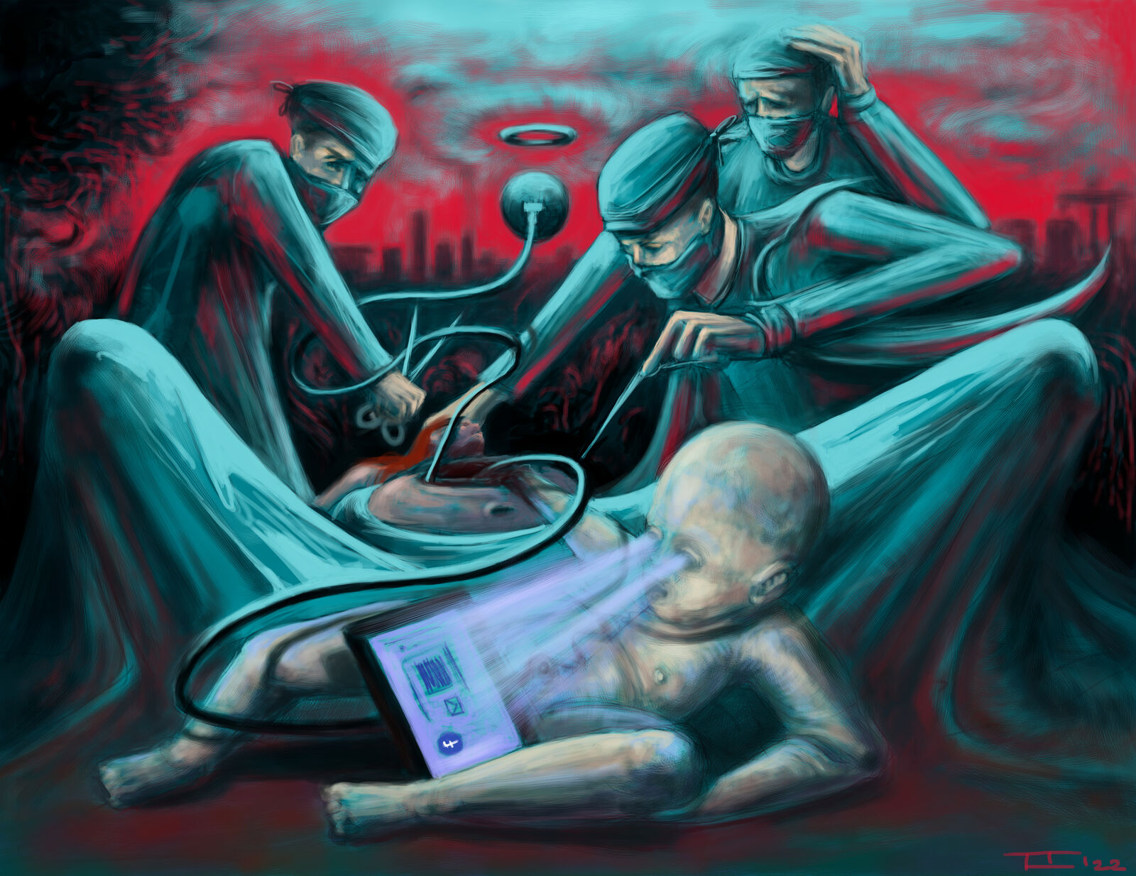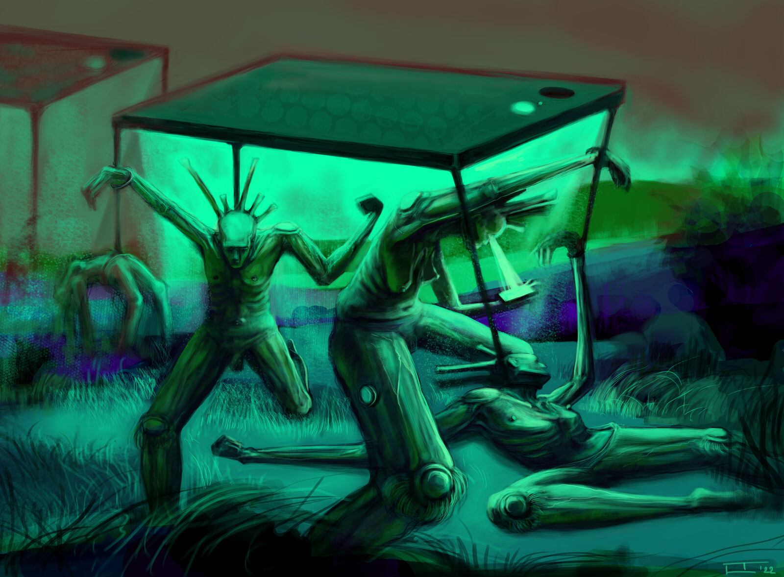 Umělkyně Tereza Laznová, která studuje navazující magisterský ateliér Grafika, upozorňuje ve své tvorbě na možný civilizační defekt a postupný přerod do nového, složitějšího a zároveň pohodlného světa, který nám usnadňují nové technologie. Výstava k návštěvníkům promlouvá pohledem třetí osoby, reprezentující současnou generaci, která se přizpůsobuje měnícímu se systému. Do děl Terezy Laznové se promítají prožité události a vzpomínky, prolínající se s přítomností.