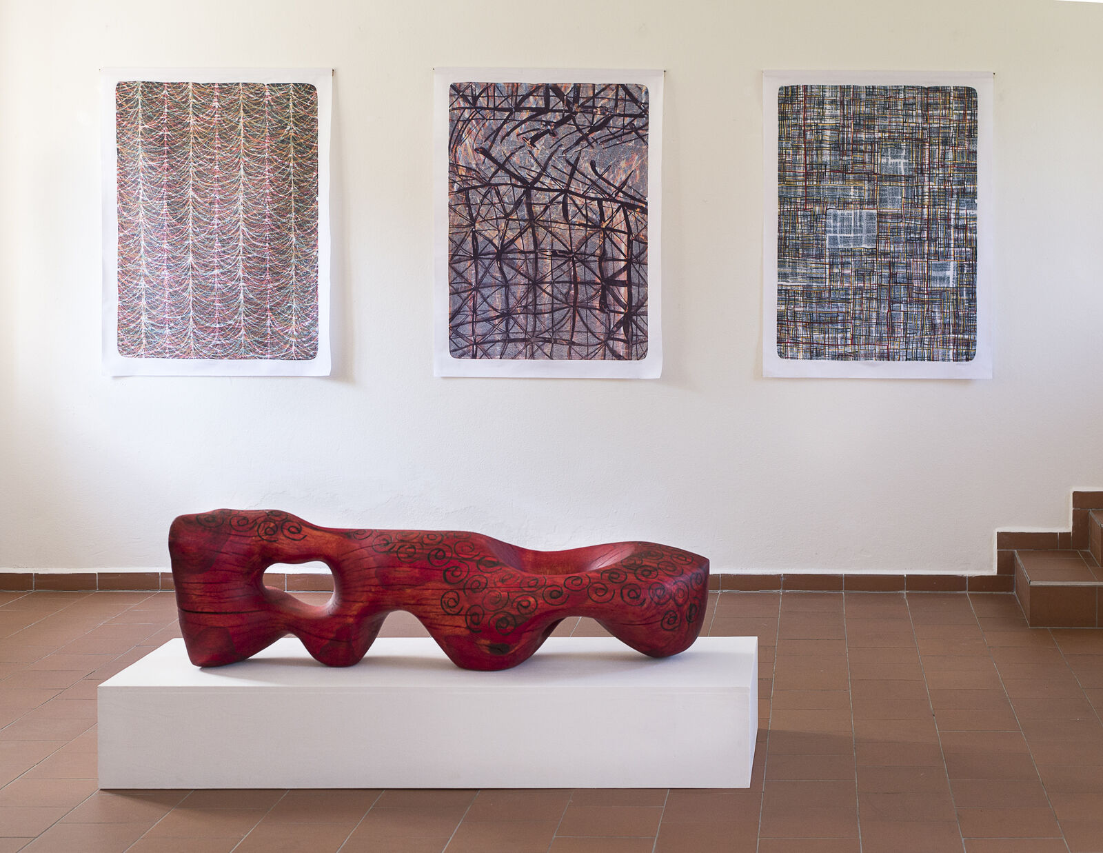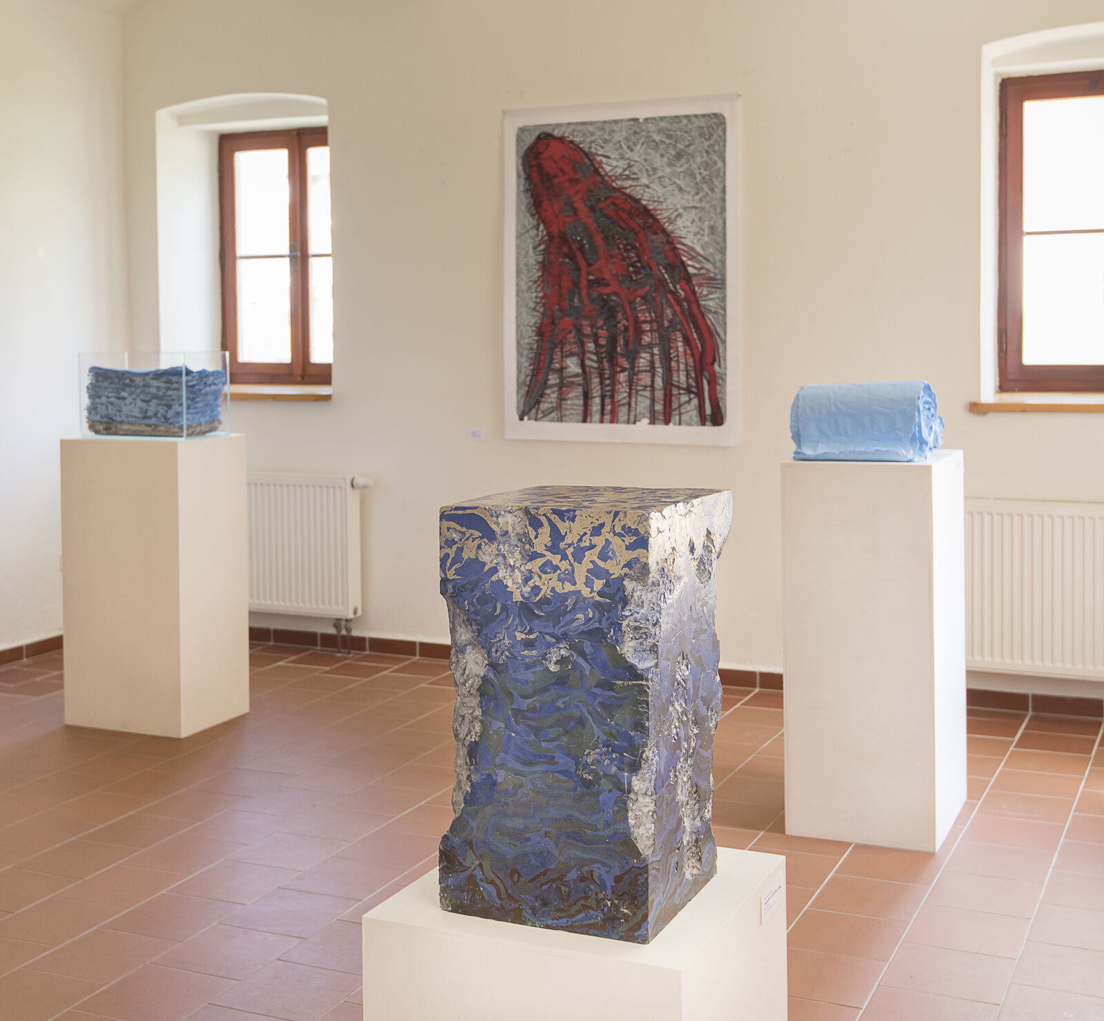 Renáta Kocmanová tu výběrem svých soch a objektů dává nahlédnout do bohatého rejstříku materiálů a postupů, kterých jako sochařka užívá – od mořeného, cejchovaného dřeva, přes beton, terazzo, stucco lustro a sádru k ručně nakládanému, pigmenty barvenému papíru se slepotiskem. Vystavená díla spojuje téma Živly, k němuž se autorka ve své tvorbě opakovaně vrací.