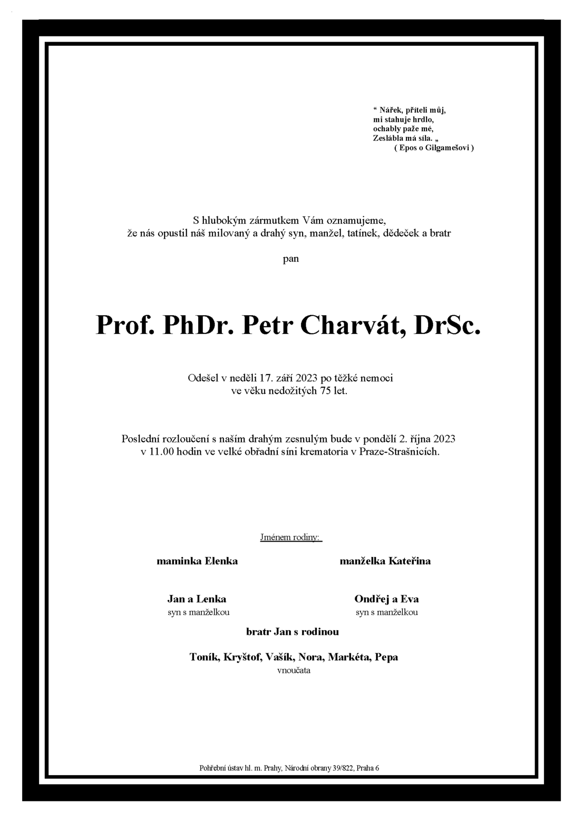 Prof. Petr Charvát se narodil 12. ledna 1949, v letech 1968–1973 absolvoval Filosofickou fakultu Univerzity Karlovy, obor klínopis – archeologie. Profesorem českých dějin se stal v roce 2011. Působil v Archeologickém ústavu a Orientálním ústavu Akademie věd ČR, které později vyměnil za univerzitní pracoviště, na nichž rozvíjel své vědecké zájmy.