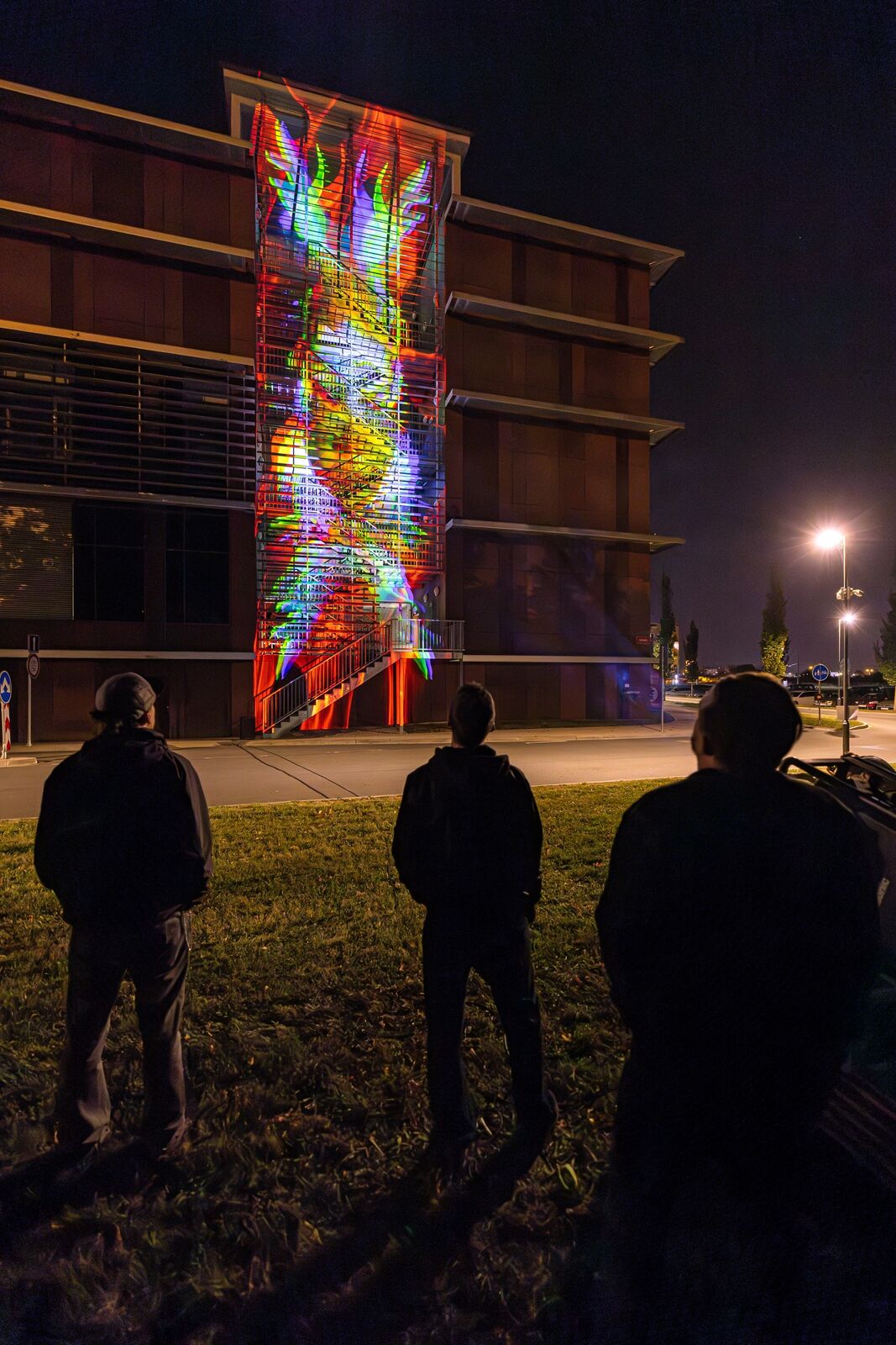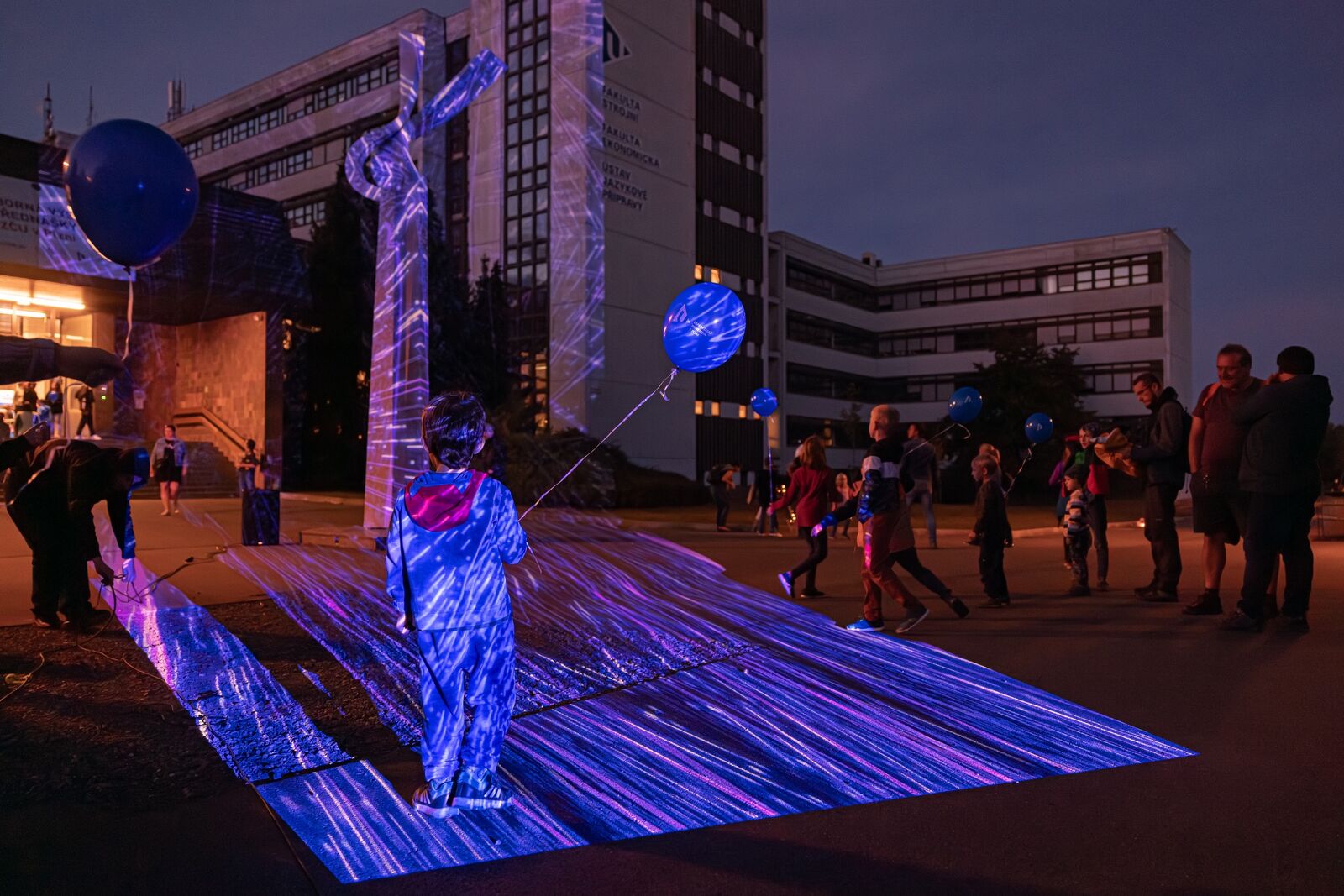 Kromě budov se část program odehrála také v areálu, neboť Fakulta designu a umění Ladislava Sutnara přichystala tradiční videomapping, letos ovšem putovní, jímž rozzářila například plastiku před budovou Univerzitní 22 či schodiště na budově Fakulty aplikovaných věd.