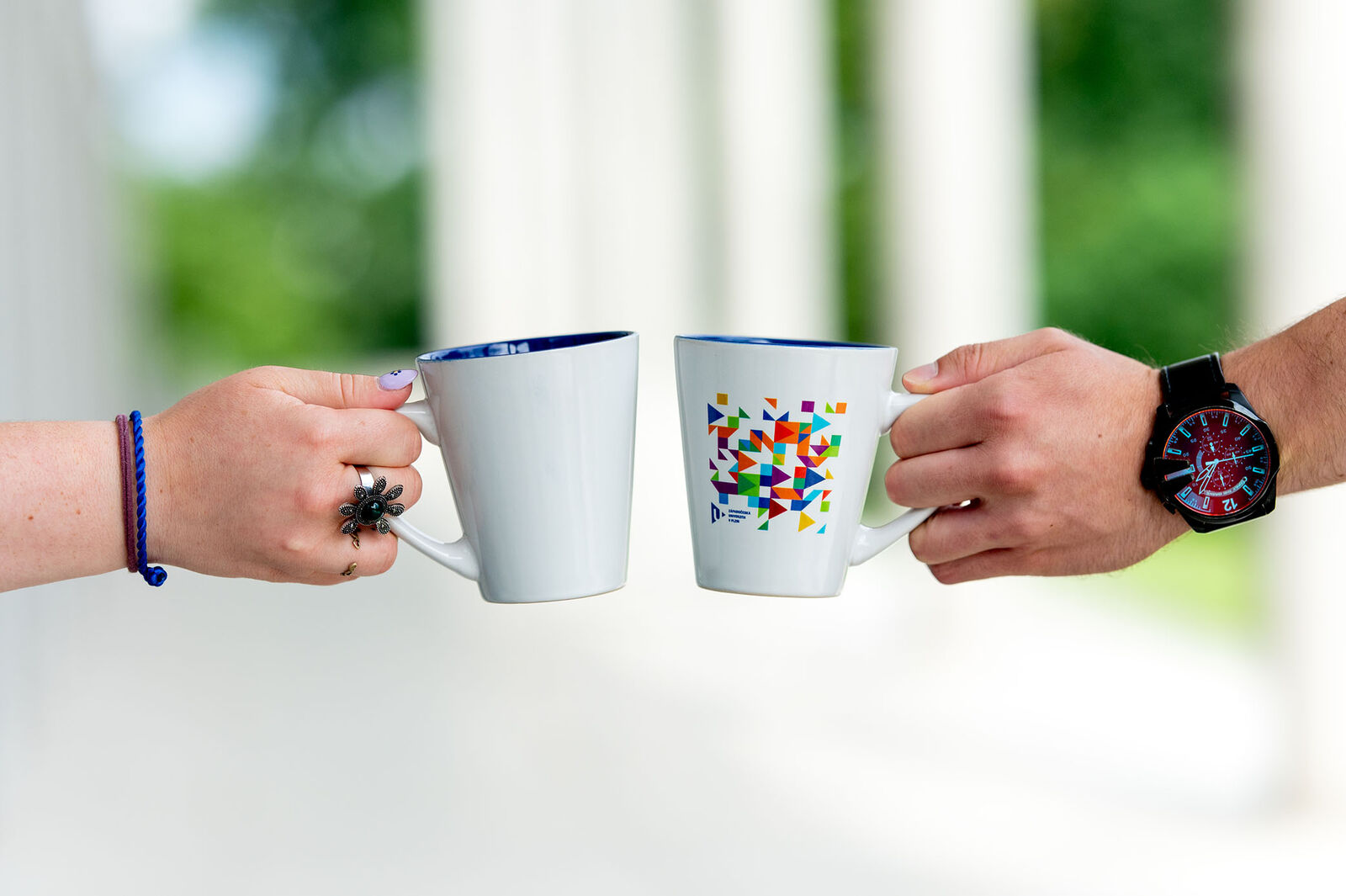 Příjemným bavlněným tričkem slušivého střihu se hrdě přihlásíte ke své alma mater, ať už studujete na kterékoli fakultě. Aby vašim mobilům či tabletům nedošla šťáva, pořiďte pro ně powerbanku o kapacitě 10.000 mAh. Vše potřebné na cestu si můžete sbalit do polstrovaného univerzitního batohu na notebook, do nákupní tašky nebo stahovacího vaku na záda. Všechna zavazadla jsou navíc vyrobena s ohledem na životní prostředí, stejně jako poznámkový blok s čistými listy bez linek. Nezbytná káva nebo čaj budou určitě chutnat nejlépe z univerzitního hrnku s kontrastním modrým vnitřkem, nalévané z vakuové termosky s celoplošným potiskem, a před nepřízní počasí se skryjete pod objemným deštníkem vyrobeným na míru z jednoho kusu látky.