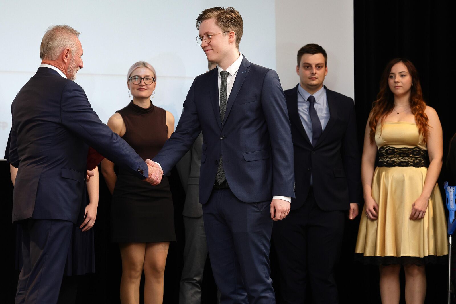 Stipendium rektora převzalo z rukou Miroslava Lávičky dvacet studujících