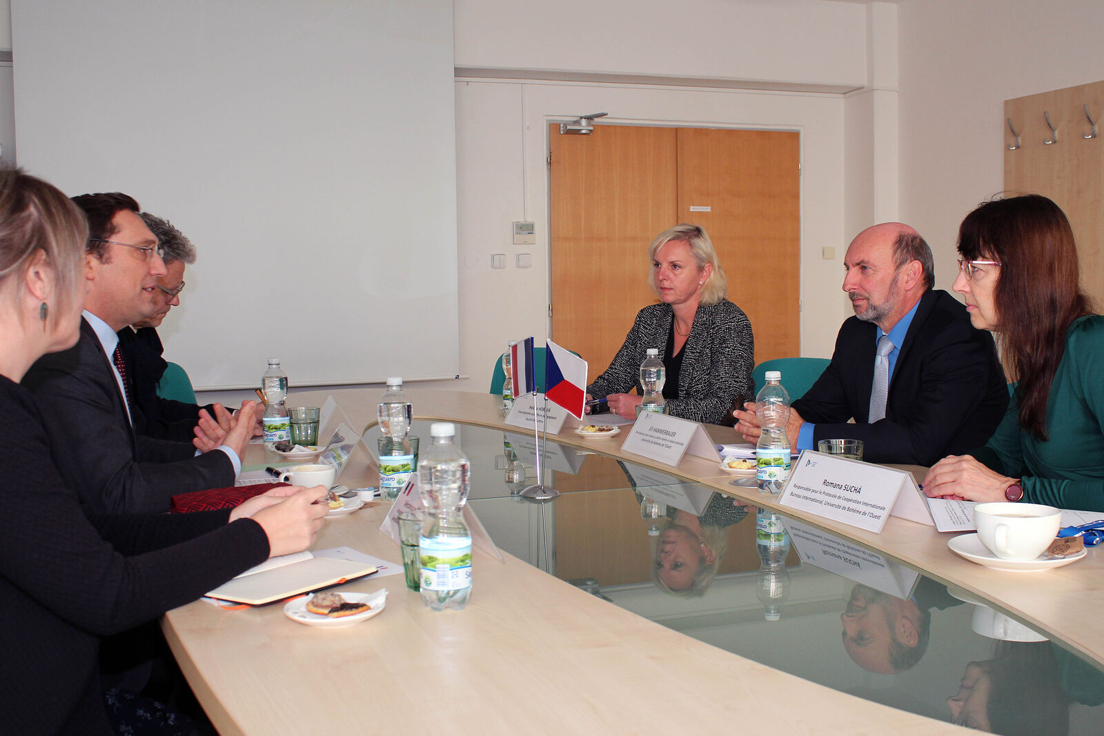Prorektor Hammerbauer delegaci blíže seznámil se studentskými mobilitami a zmínil, že na ZČU v tomto akademickém roce absolvuje výměnný studijní pobyt 44 studentů a studentek z Francie. „S francouzskými partnery nás ale spojuje i celé řada vědeckých projektů, v rámci nichž probíhají výměny pracovníků i studujících doktorského studia, a to jak z oblasti technických věd, tak z oblasti humanitní,“ uvedl. Zmínil rovněž úspěch Fakulty elektrotechnické, jež tento měsíc získala certifikaci Mezinárodní agentury pro atomovou energii a připravuje studijní program Management jaderného strojírenství.