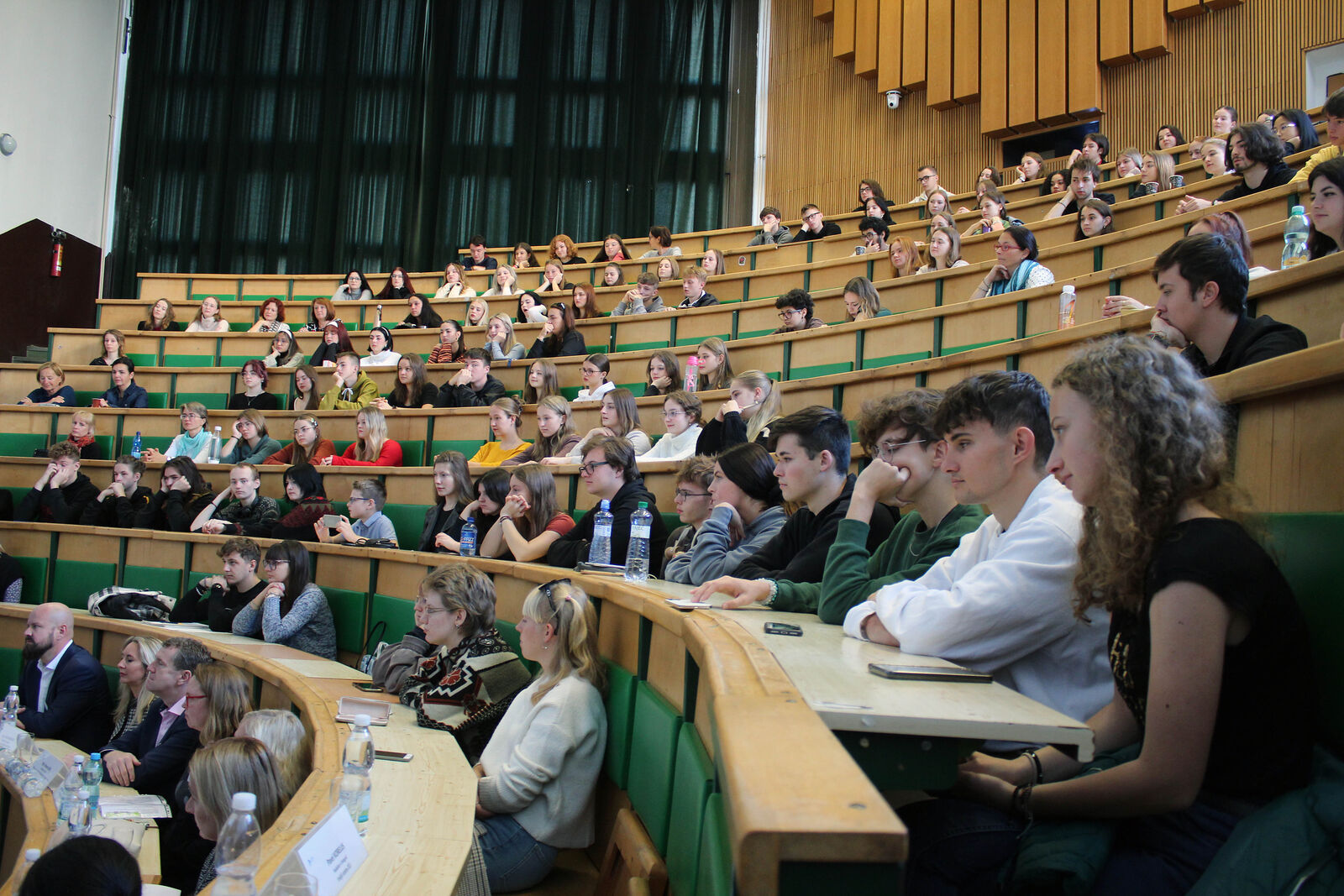 Hlavní program Setkání po francouzsku hostila budova Fakulty strojní a ekonomické, kde prorektor a velvyslanec oslovili posluchárnu zaplněnou studentkami, studenty, středoškolačkami i středoškoláky. Spojoval je zájem o Francii, o francouzskou kulturu a o francouzštinu.