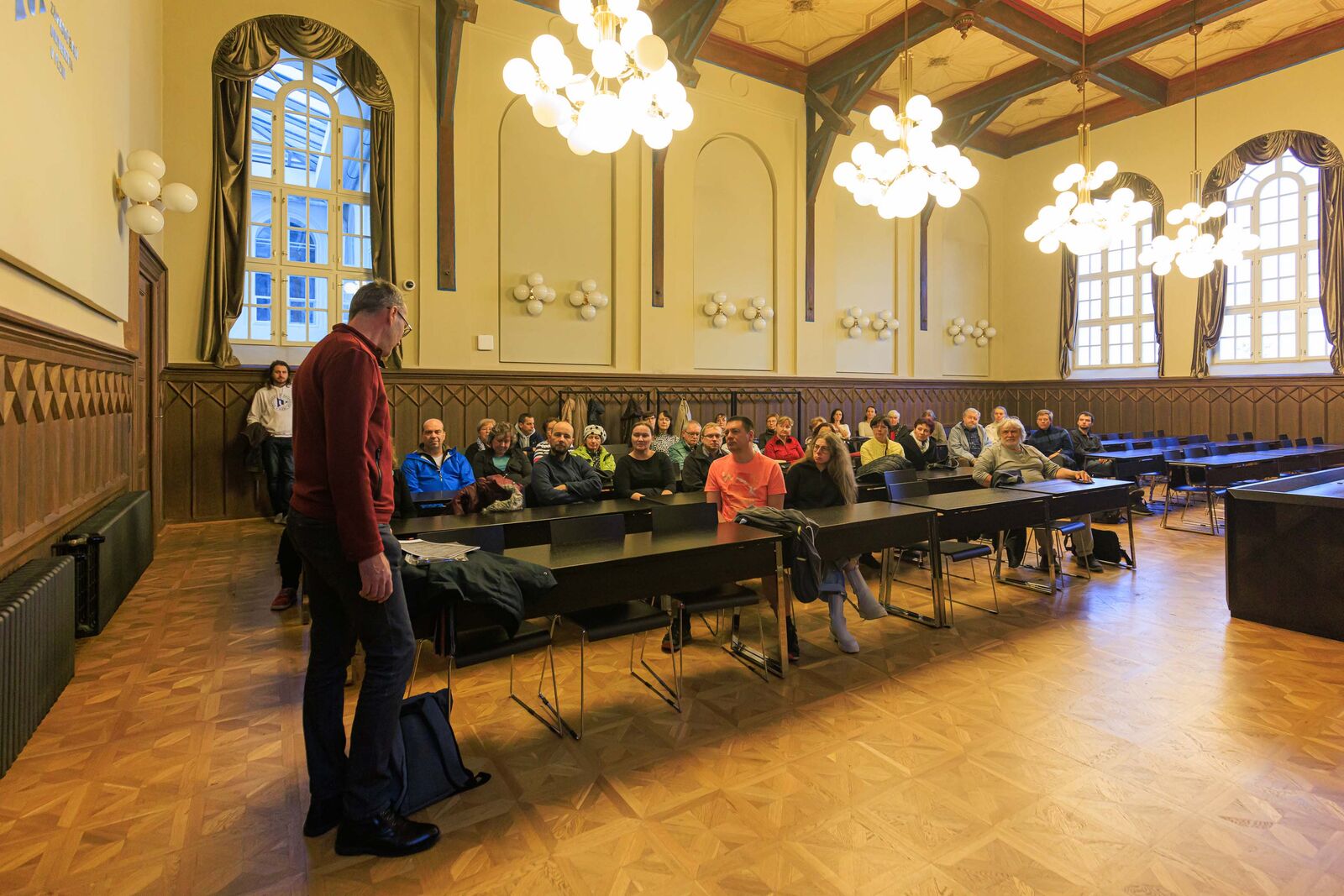 Skupina registrovaných zájemkyň a zájemců se v pátek 10. listopadu vydala na tříhodinovou procházku s podtitulem Za památkami ZČU. Vedl ji architekt Petr Domanický ze Západočeské galerie v Plzni. Trasa? Fakulta pedagogická, Fakulta filozofická, Fakulta právnická, Fakulta zdravotnických studií – čtyři fakulty, čtyři sídla děkanátů v památkově chráněných budovách. Petr Domanický přítomné seznámil nejen s historií jednotlivých objektů, ale vše zasadil do historických souvislostí, a tak se posluchačky a posluchači kromě zajímavostí o univerzitních budovách dozvěděli také mnoho informací o proměnách Plzně.