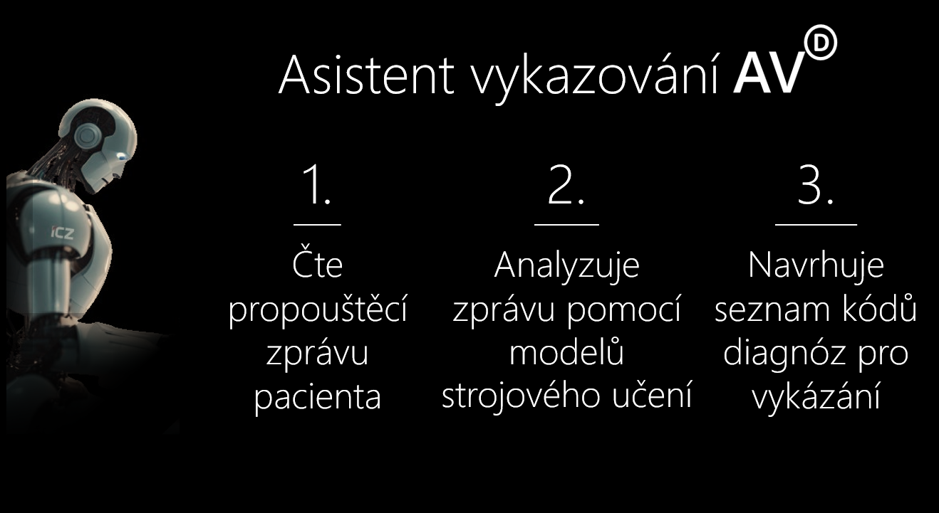 Asistent vykazování AV(D) je založen na nejmodernějším typu hluboké neuronové sítě, tzv. Transformeru. Dokáže zpracovat zdravotnickou dokumentaci pacienta a připravit pro lékaře nebo klinického kodéra seznam kódů diagnóz, výkonů, léčiv či materiálů k vykazování pro zdravotní pojišťovnu. To vše v současné době probíhá ručně. Jedná se přitom o velmi monotónní, detailní a časově náročnou analytickou práci s velkou zodpovědností a obrovským dopadem na příjmy nemocnic. Právě na základě těchto údajů jim totiž zdravotní pojišťovny platí za provedenou péči.