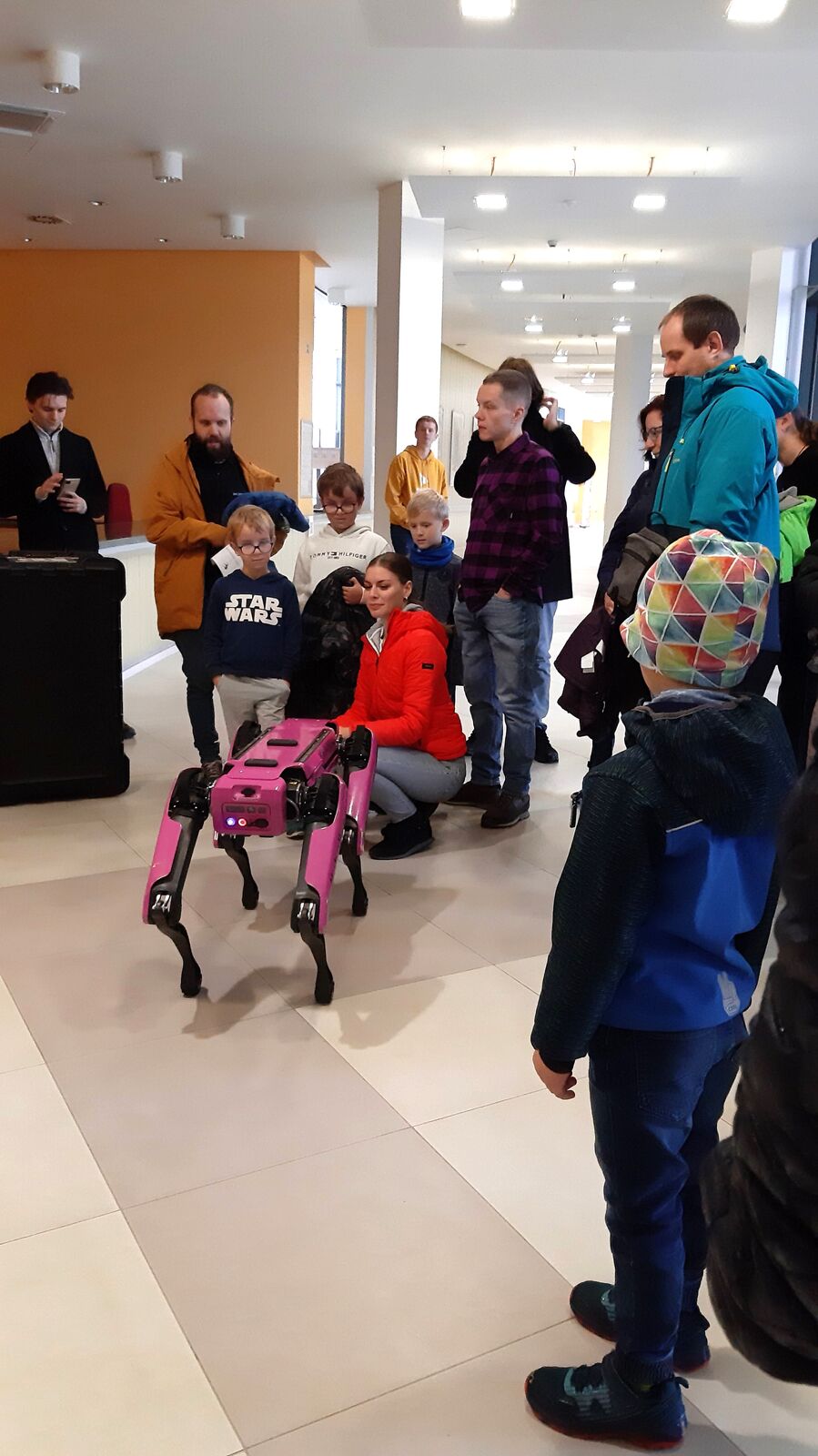 V rámci doprovodného programu zavítal na FAV i robotický pes SPOT od firmy Boston Dynamics, návštěvnice i návštěvníci si mohli užít výhled ze střechy fakulty nebo navštívit mobilní planetárium, které k nám dovezli zaměstnanci rokycanské hvězdárny a planetária.