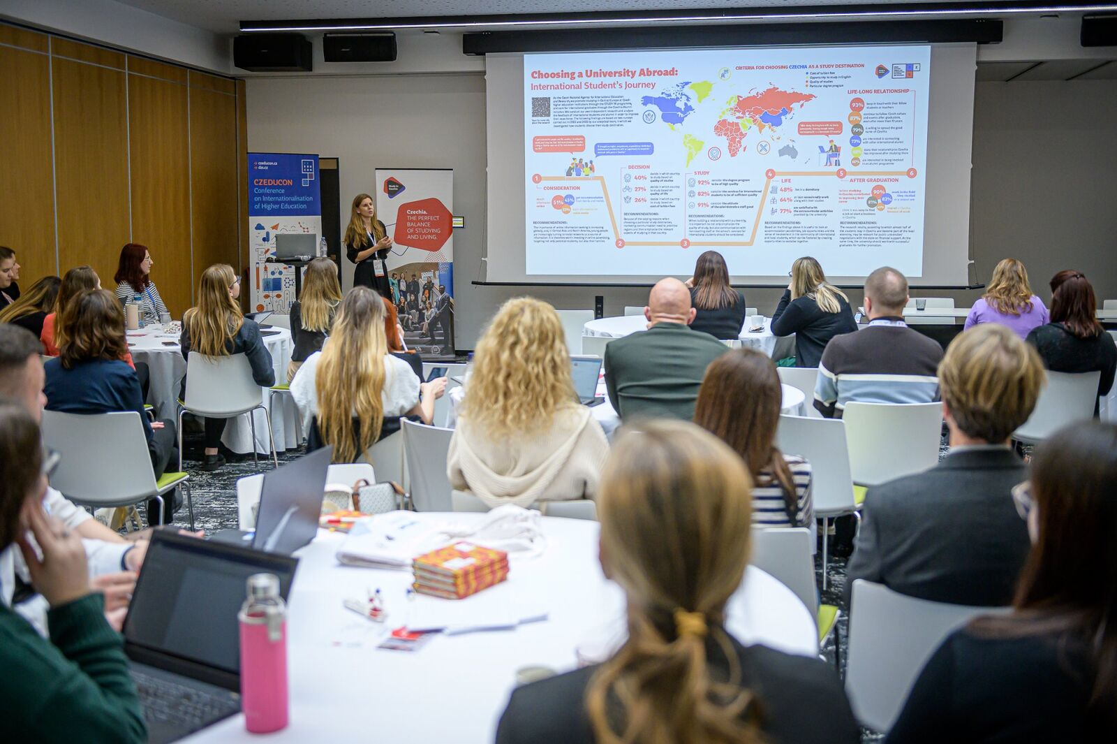 Během třídenní konference se konalo téměř 50 přednášek, seminářů a workshopů zaměřených na různá témata související s mezinárodní spoluprací a internacionalizací ve vysokém školství, jako například: semináře k programu Erasmus+ KA131, KA171 a EWP, workshopy ke sdílení zkušeností ze spolupráce v rámci aliancí evropských univerzit, semináře s náměty, jak cílit na generaci Z, workshopy k tématům digitalizace a udržitelnost v mezinárodním vysokoškolském vzdělávání, příklady dobré praxe propojování náboru budoucích studentů a práce s uchazeči o studium, studenty a absolventy, zkušenosti s krátkodobými mobilitními programy (BIP), atd. Večerní program a přestávky věnovali účastníci konference navazování osobních kontaktů a výměně zkušeností.Foto: Petr Zewlakk Vrabec