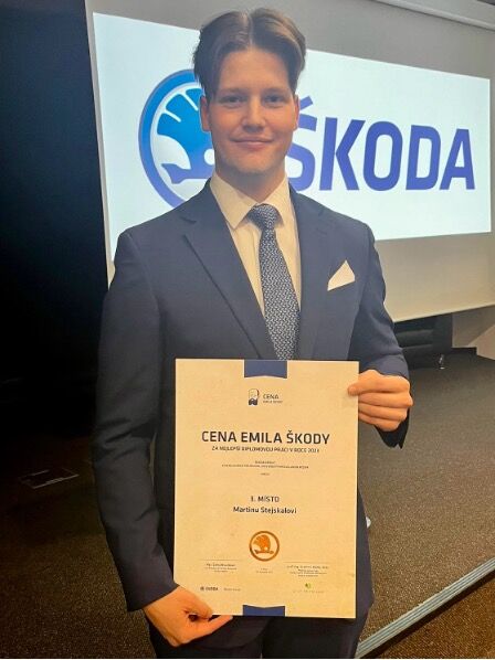 V kategorii diplomových prací technického zaměření obsadil třetí příčku Martin Stejskal z katedry konstruování strojů Fakulty strojní s prací na téma Optimalizace návrhu interiérových madel s využitím nových materiálů a technologií, kterou obhajoval v roce 2023 pod vedením Františka Sedláčka.