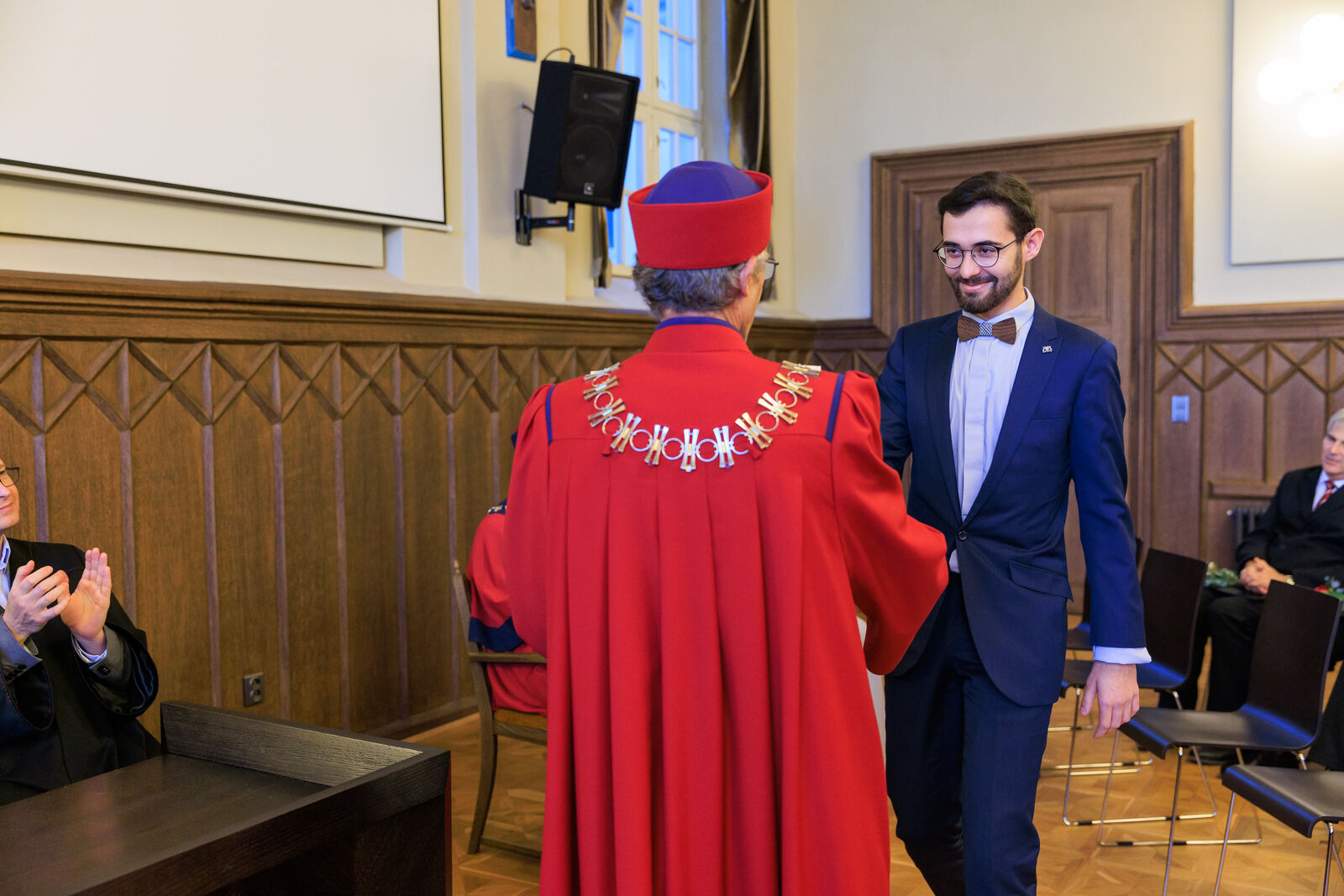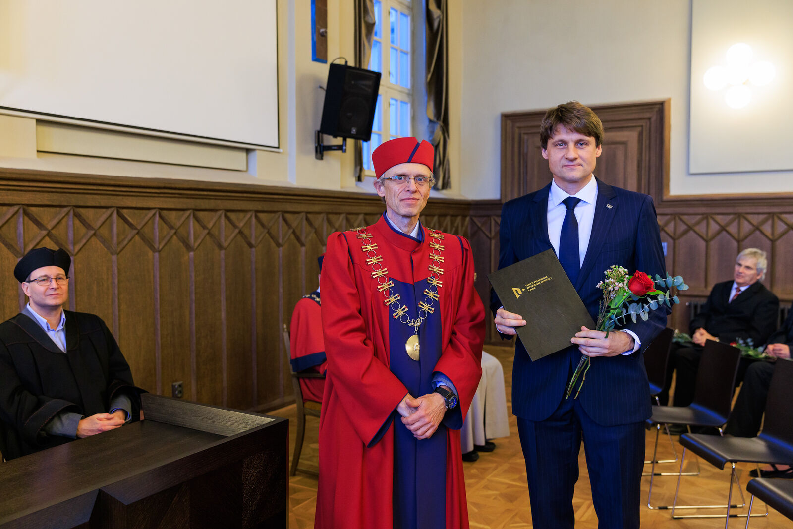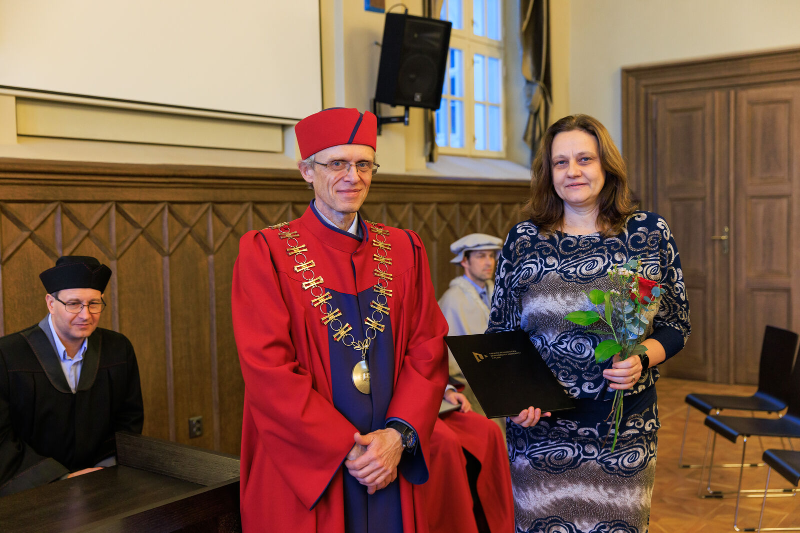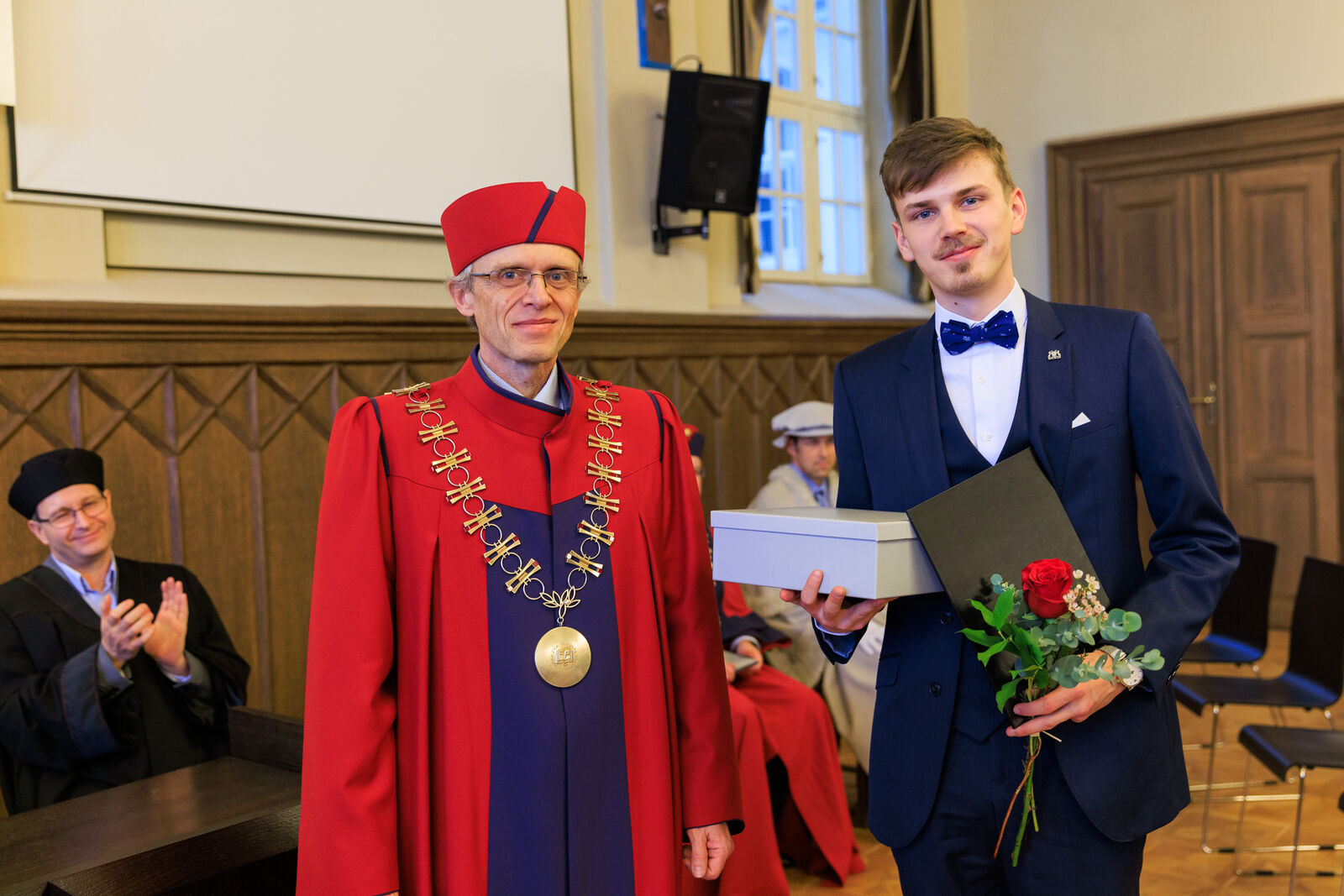 Oceněni byli i vybraní studující, a to za mimořádný přínos ve studentských činnostech a aktivitách. Děkan tak pogratuloval Michalu Šveci, Patriku Vaňkovi, Lukáši Vachovcovi, Petru Breitovi a Vanesse Kantnerové.