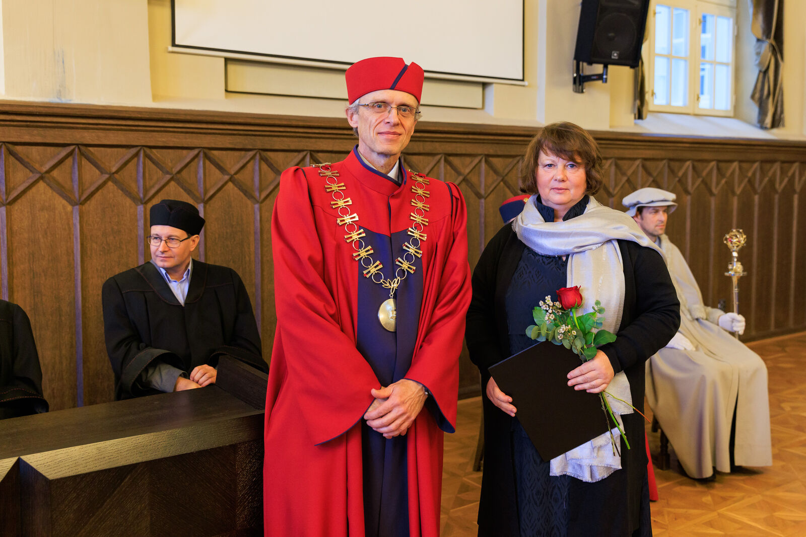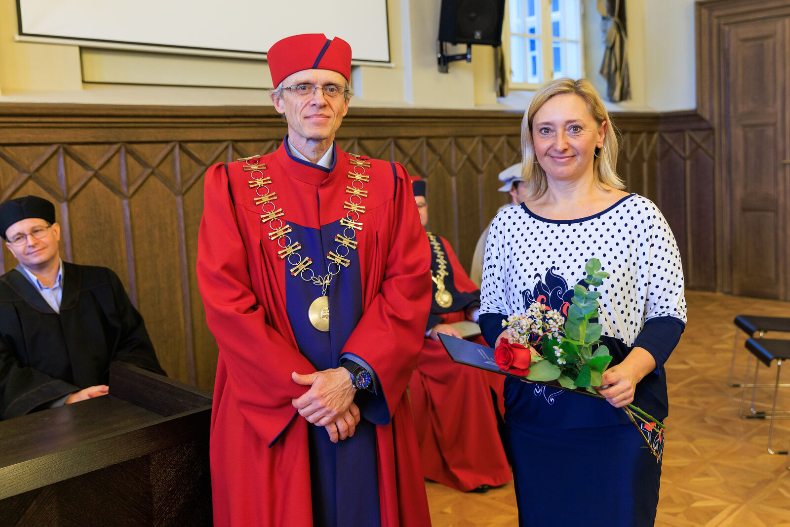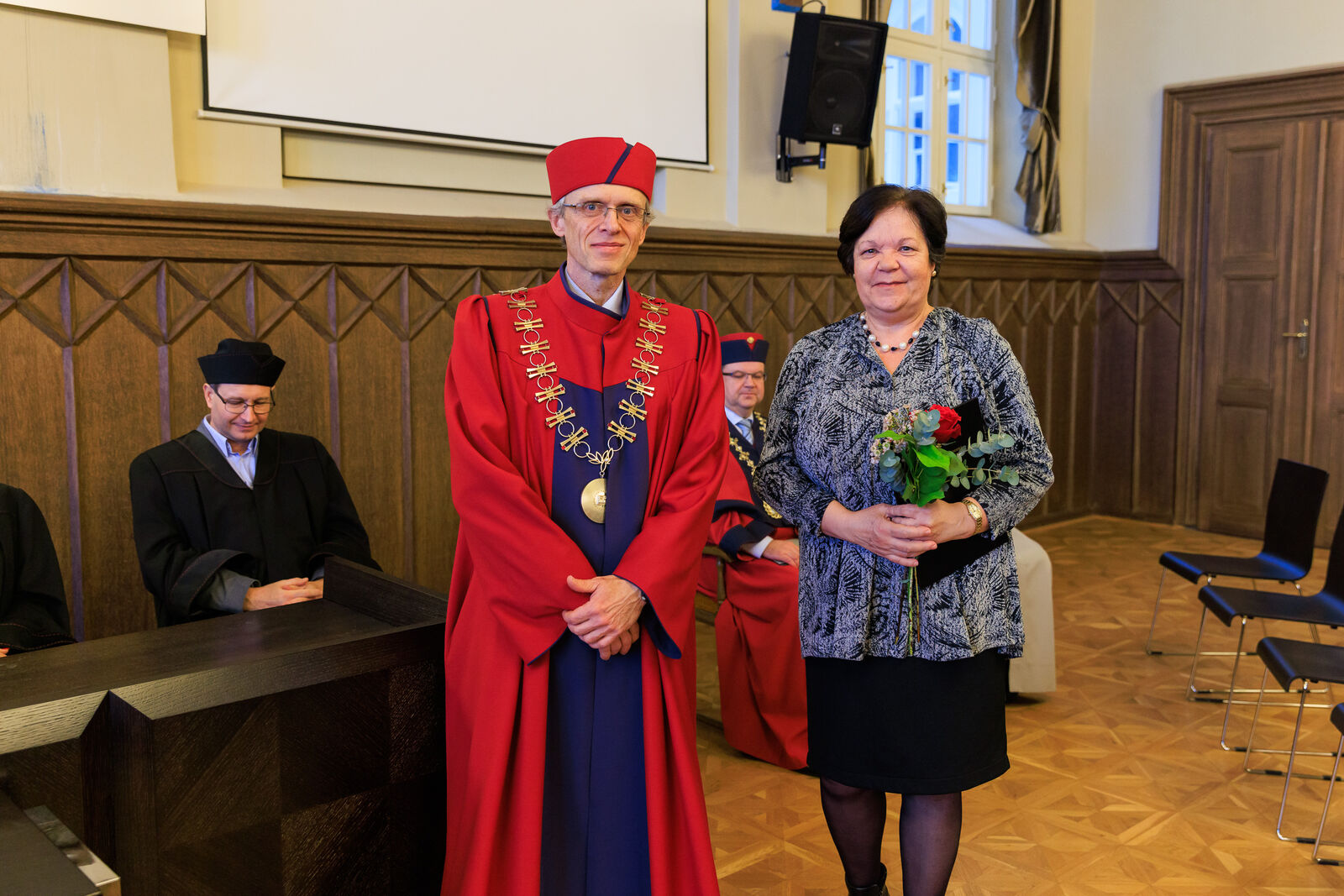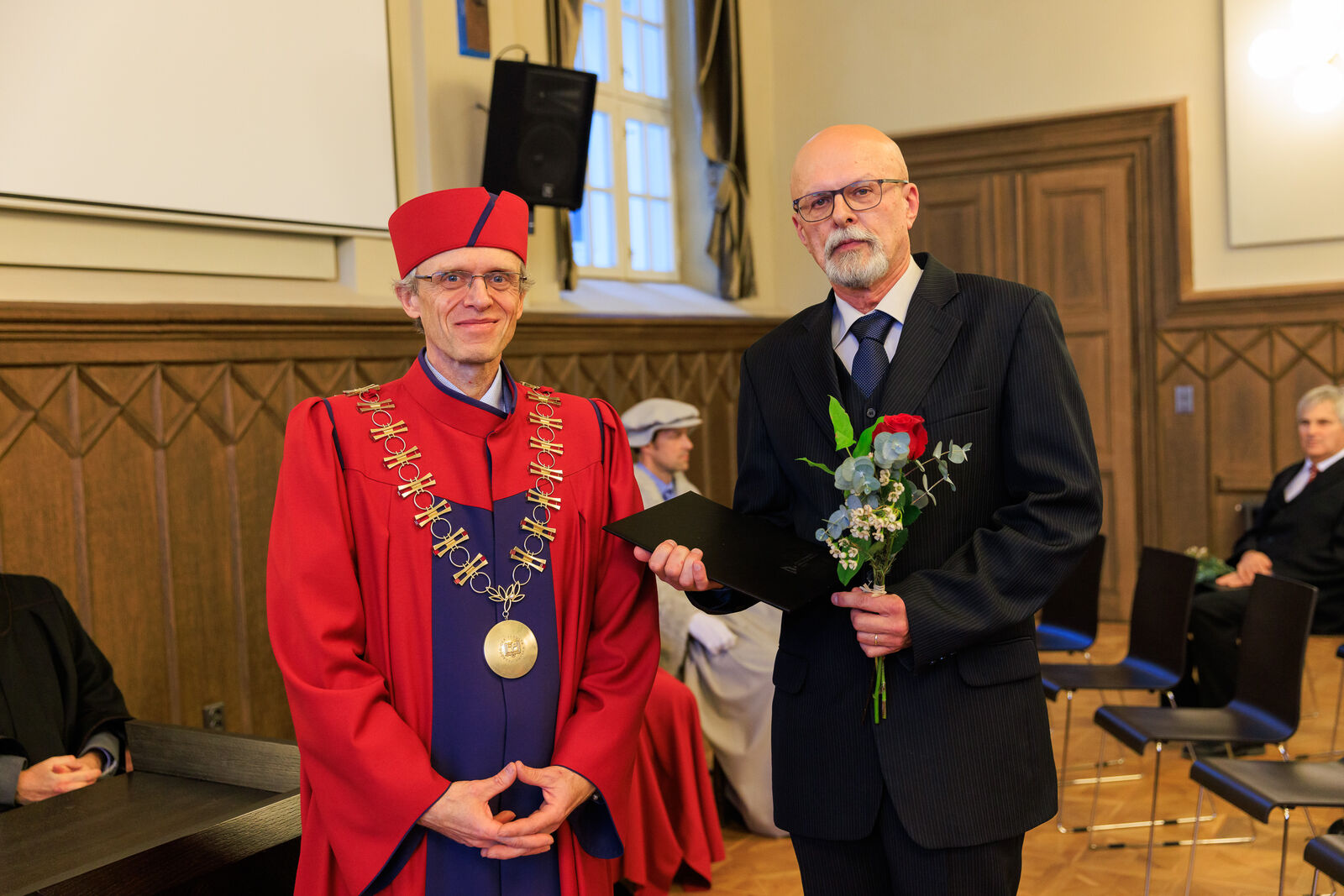 Oceněni byli i vybraní studující, a to za mimořádný přínos ve studentských činnostech a aktivitách. Děkan tak pogratuloval Michalu Šveci, Patriku Vaňkovi, Lukáši Vachovcovi, Petru Breitovi a Vanesse Kantnerové.