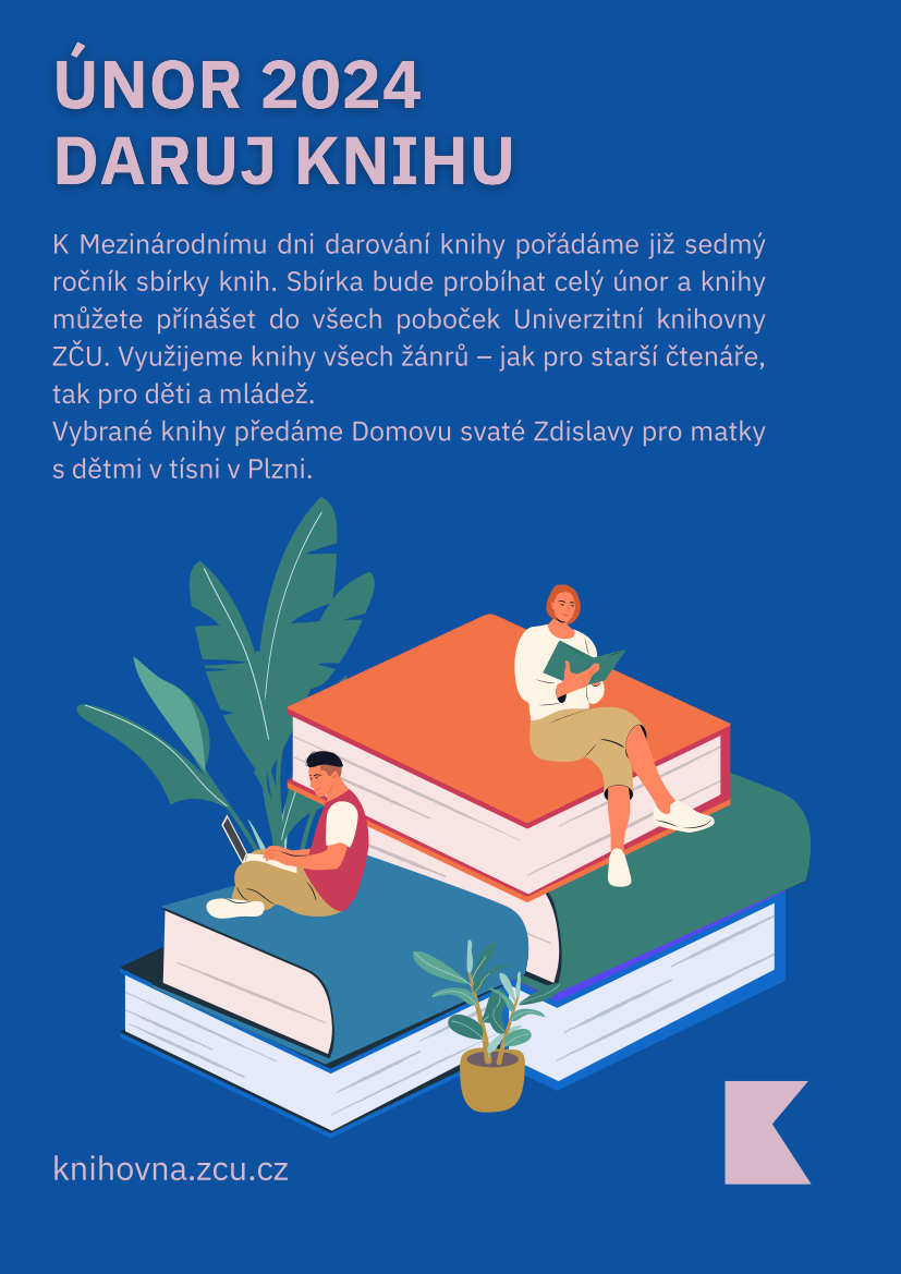 Nové knihy nebo knihy v dobrém stavu lze po celý únor přinášet do poboček Univerzitní knihovny. Přijímá je v kampusu ZČU na Borských polích, ve Filozofické a právnické knihovně v sadech Pětatřicátníků 16, v Knihovně zdravotnických studií v Sedláčkově 31, v Pedagogické knihovně na Klatovské 51 i v Ekonomické knihovně v Chebu v Hradební ulici 22.