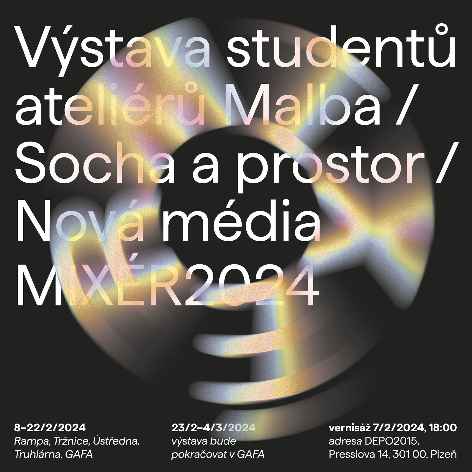 Výstava bude v prostorách DEPO2015 (Rampa, Tržnice, Ústředna, Truhlárna, galerie GAFA) k vidění v plném rozsahu do 22. února. S ohledem na program kreativní zóny DEPO2015 bude 23. 2. – 4. 3. pokračovat pouze výběr z výstavy v galerii GAFA.