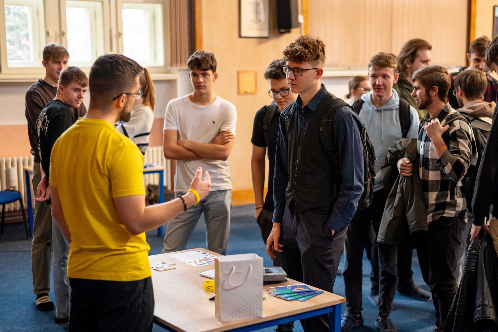 Během hodiny a půl zhlédli gymnazisté pětiminutové prezentace Západočeské univerzity, Fakulty aplikovaných věd, Fakulty designu a umění Ladislava Sutnara, Fakulty ekonomické, Fakulty elektrotechnické, Fakulty filozofické, Fakulty pedagogické, Fakulty právnické, Fakulty strojní i Fakulty zdravotnických studií. Poté byli zástupkyně a zástupci fakult připraveni odpovídat na individuální otázky ve stáncích. Tuto příležitost mohli využít také žáci a žákyně čtvrtých ročníků.