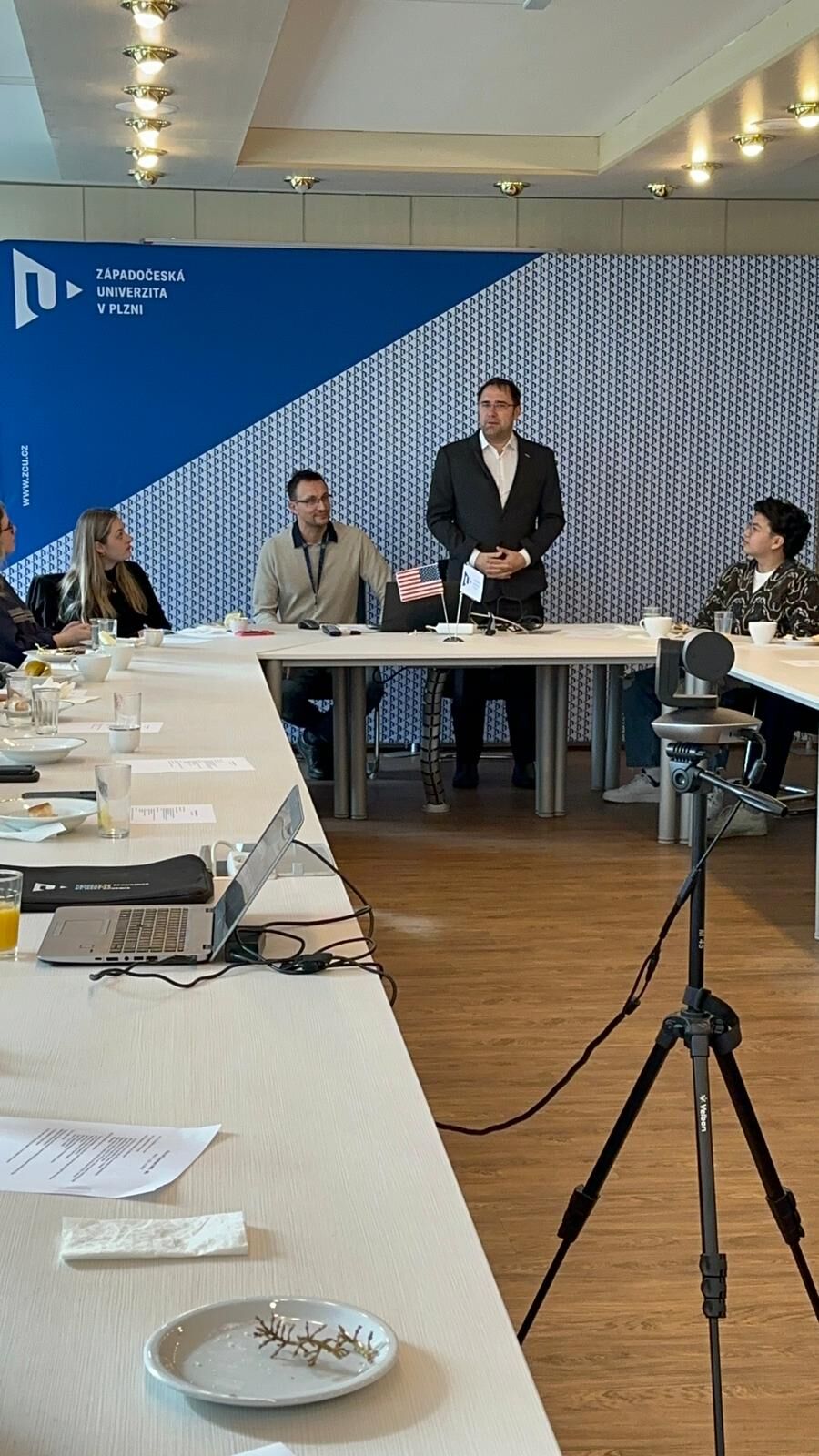 Given the round anniversary of cooperation, the opening official meeting was also framed by greetings from the top representatives of both universities: the participants were greeted on behalf of the UWB by the vice-rector for the concept of education and student affairs Jiří Kohout and on behalf of the MU, its president Mike Lowel spoke from the recording.