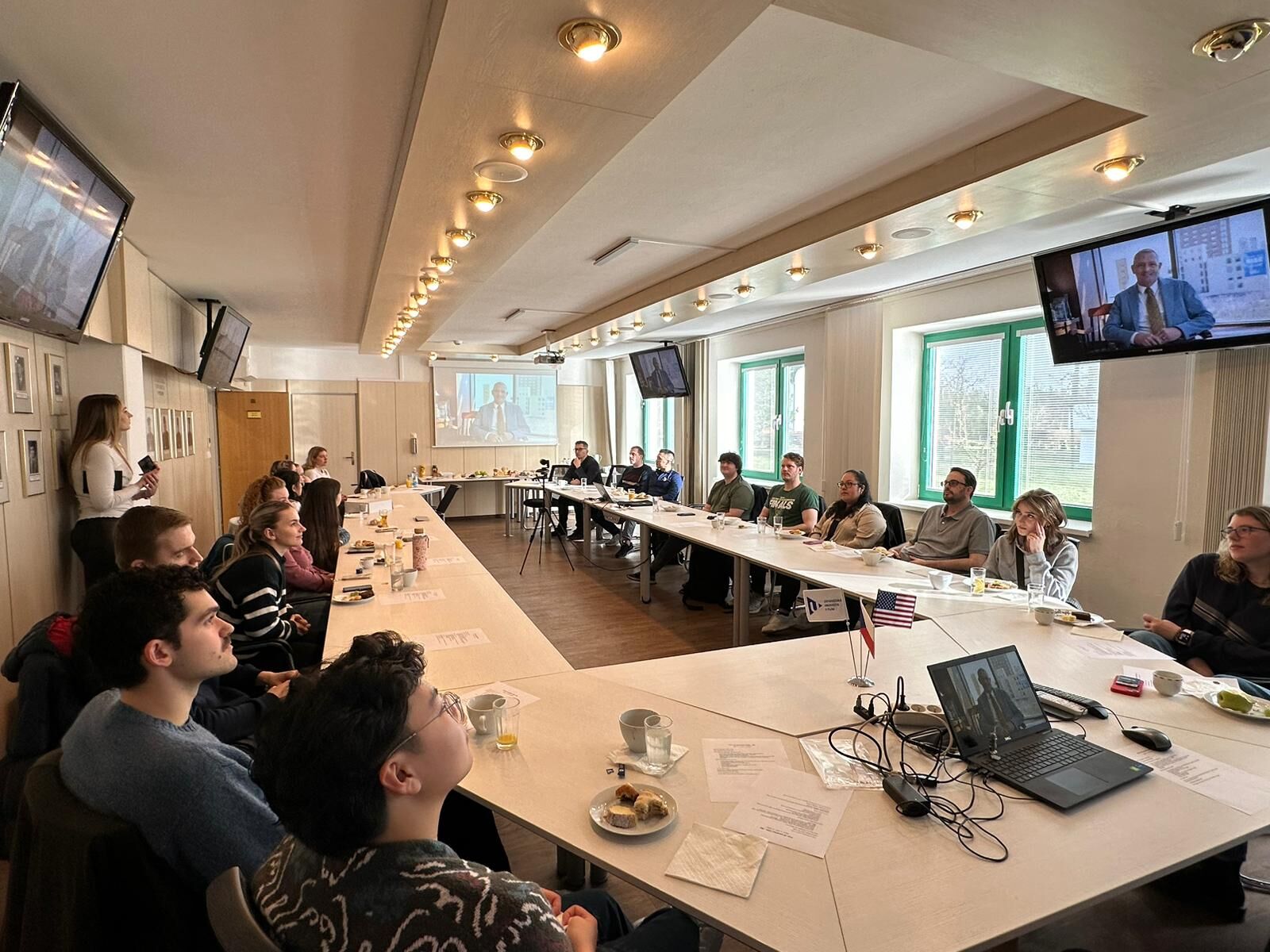 "Remember that your teams are supposed to collaborate, not compete. Be inclusive. Notice things around you and share them. And don't forget to take pictures - you'll keep many memories." These were some of Michael Korpela's words at the opening breakfast on Monday, March 11, in which he spoke to the Czech-American team of students and teachers/coordinators during a live connection directly from Milwaukee. M. Korpela, the top manager of the Miller Coors brewery, definitely had something to say to this year's participants. In 1996, he participated in the first course by UWB and MU. He later participated in several runs as a leader and coordinator for the American side.