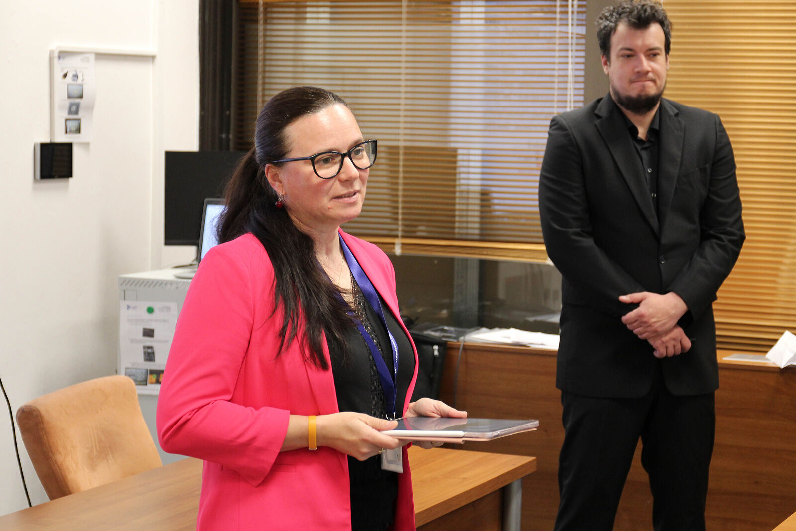 Stejné zadání měl i další tým, který přišel s jiným nápadem. „Chtěli jsme nahradit systém otevírání komory a navrhnout přesouvání vzorků po místnosti, přidali jsme i QR čtečku na vzorky,“ řekl vedoucí skupiny Adam Kič z Fakulty strojní.