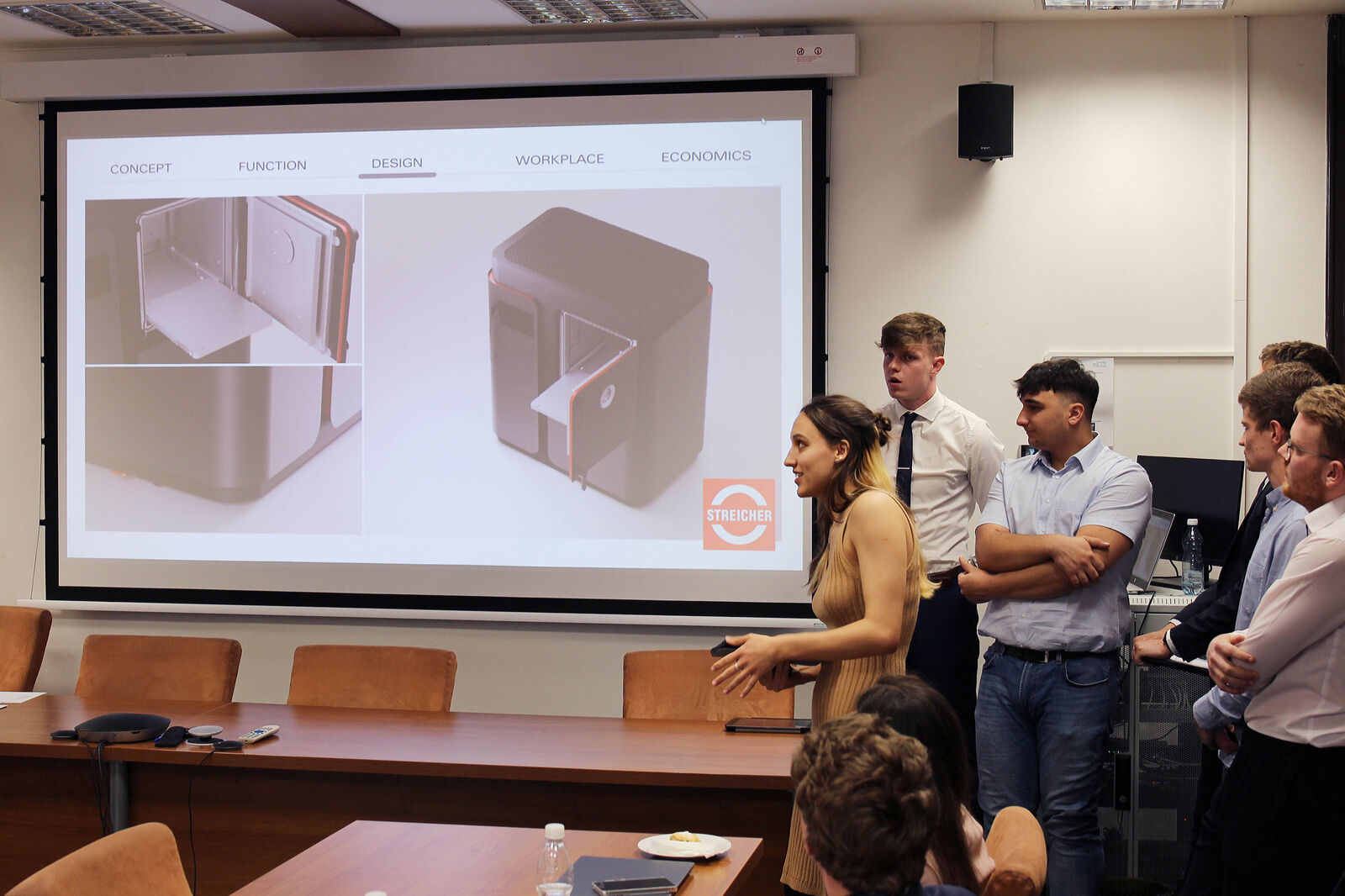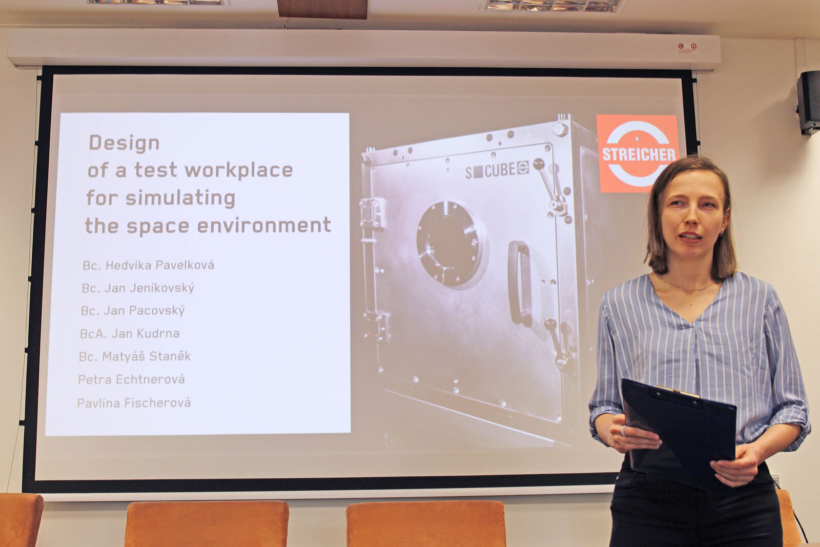 Firma Streicher zadala studentům úkol vytvořit kompletní konstrukční a designérský návrh pracoviště pro testování dílů pro provoz ve vesmíru. Pracoviště má zahrnovat modulární vakuovou komoru pro simulaci vesmírného prostoru, tepelnou jednotku, vakuový systém čerpání a pracoviště na přípravu a zpracování testovaných komponent. „Museli jsme vymyslet nejen funkční technologii, ale i to, jak by toto pracoviště mělo vizuálně vypadat. Kolegové z Fakulty zdravotnických studií se na projekt museli zaměřit i z hlediska zdraví zaměstnanců, aby pro ně pracoviště bylo zdravotně nezávadné,” popisuje manažerka studentského týmu Hedvika Pavelková z Fakulty strojní.