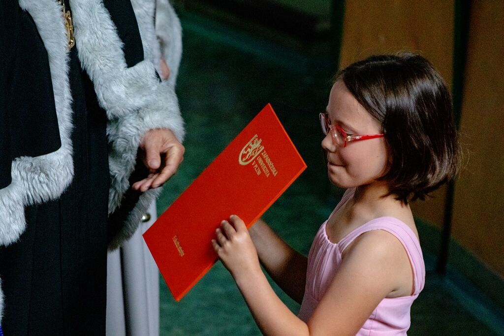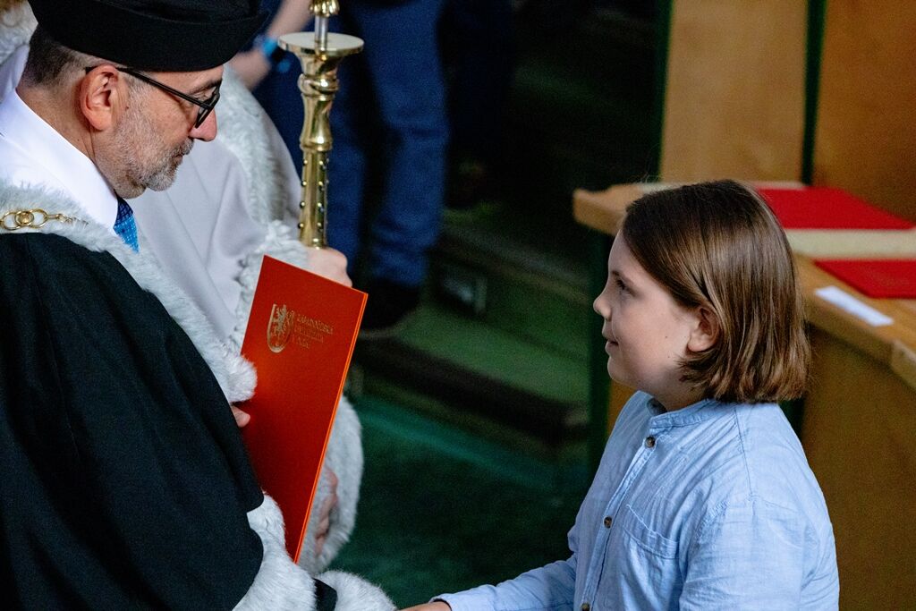 „Snažili jsme se vám ukázat směr, kterým se dnes technika ubírá. Pochopili jste, že moderní strojírenství se opírá o počítače a využívá i umělou inteligenci. Ukázali jsme vám také způsob studia na vysoké škole, který se od základních a středních škol přece jen odlišuje. Věřím, že se třeba za několik let setkáme při řádných imatrikulacích a přivítáme vás jako studenty naší fakulty,“ uvedl ve svém projevu děkan Vladimír Duchek a před zraky hrdých rodičů rozdal pilným studentům a studentkám dětské univerzity jejich vysokoškolské diplomy.
