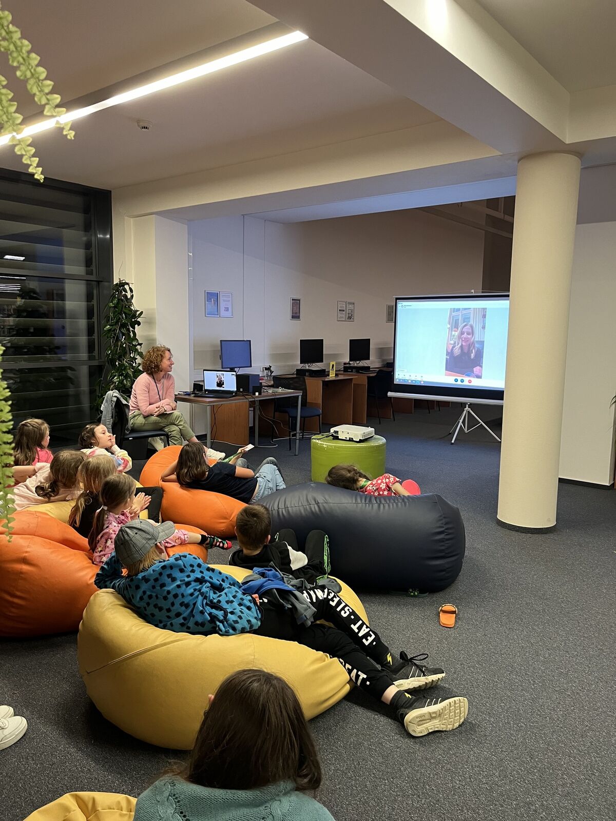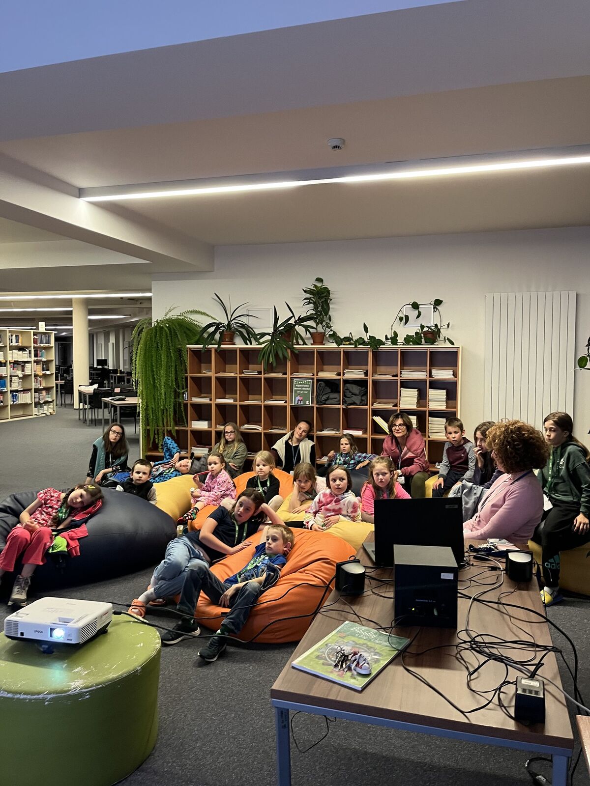 Nechybělo ani velké noční překvapení – přes videohovor se připojila autorka knihy Lucie Havlinková, která dětem přiblížila podrobnosti o vzniku knihy, nebo jaké další tituly chystá. Před spaním kolem jedenácté hodiny došlo na čtení na dobrou noc po kterém se děti odebraly do svých spacáků mezi regály. Ráno ještě stihly snídani a následné předání diplomů, poté si už pro ně přicházeli rodiče.