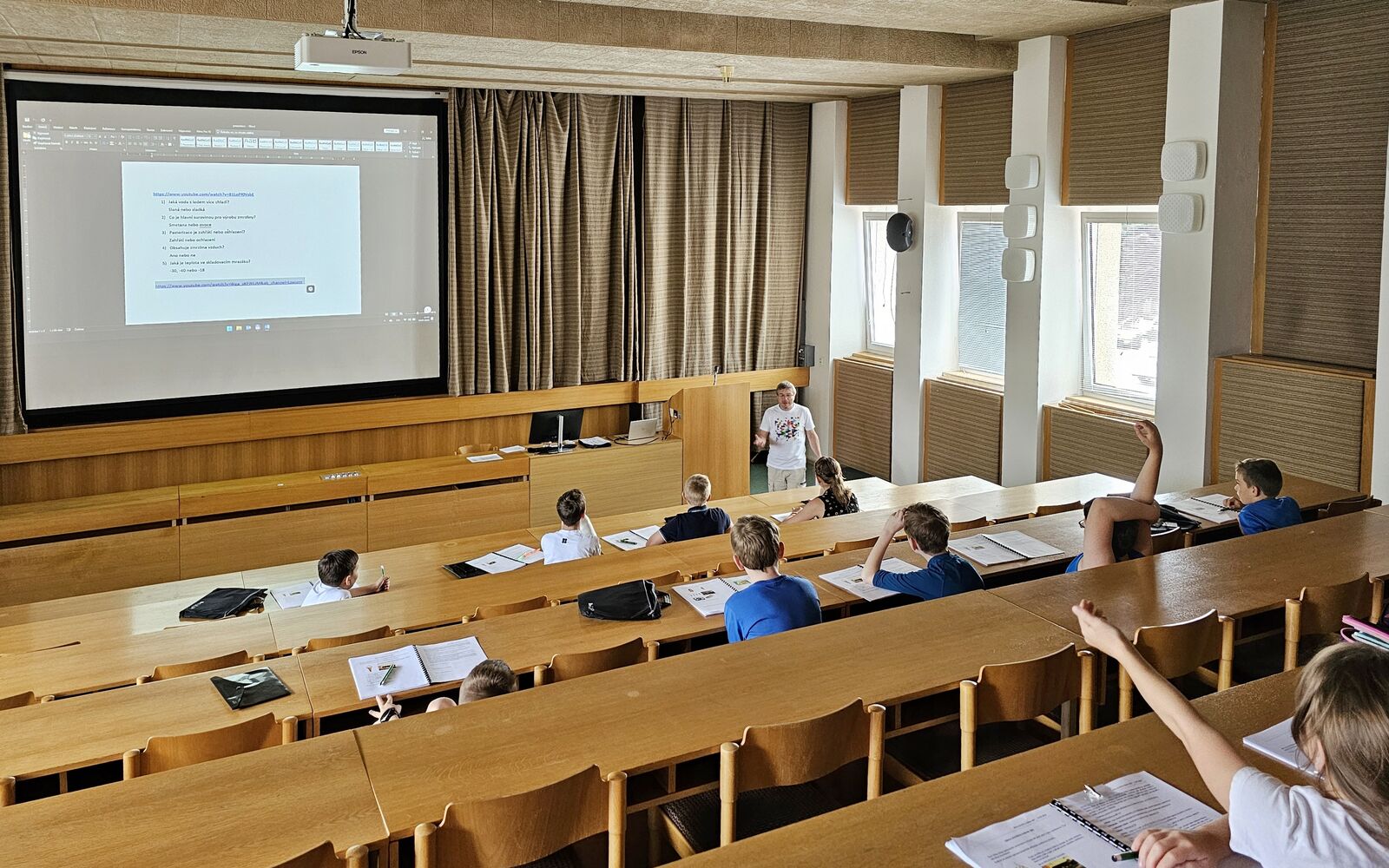 Students also engaged in various physical activities, as the summer school is not just about sitting in classrooms. Thursday was designated for an excursion, which this year took place at the university campus in Bory (visits from police officers, a walk through geological sites, and a tour of the RTI Faculty of Mechanical Engineering laboratories). In Cheb, in addition to a lecture by representatives of the Czech Police, there was also a visit to the planetarium.