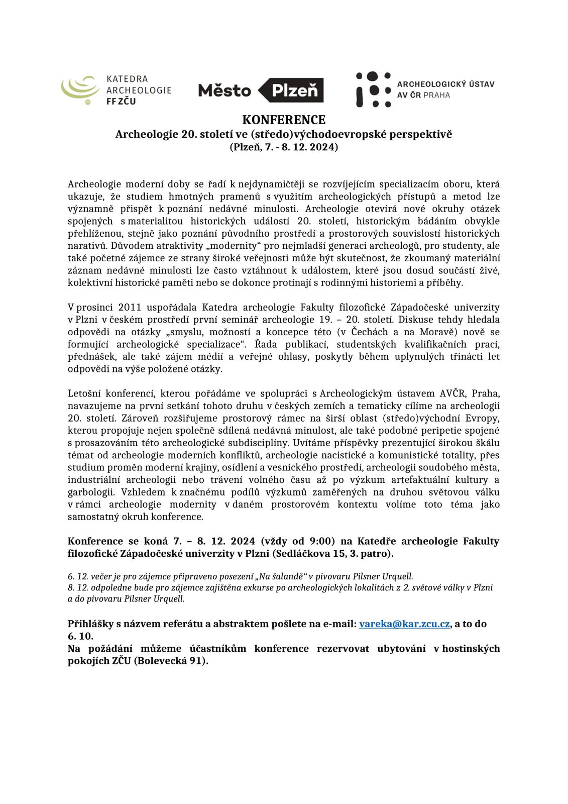 Mezinárodní konference Archeologie 20. století (20th Century Archaeology) se zaměřuje na archeologické výzkumy naší nedávné minulosti. Tato nová specializace se řadí k nejdynamičtěji se rozvíjejícím směrům v dnešní archeologii. Prostřednictvím hmatatelných dokladů přináší nové pohledy na historické události 20. století, jako jsou moderní válečné konflikty (první a druhá světová válka, studená válka), zločiny totalitních režimů (např. výzkumy nacistických a komunistických vězeňských táborů), proměny kulturní krajiny nebo způsoby trávení volného času v moderní společnosti.