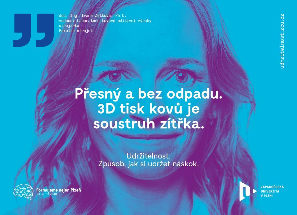 Od strojařky Ivany Zetkové se lidé dozví více o 3D tisku kovů, který lze považovat za udržitelný soustruh 21. století. Jeho předností je totiž výroba bez zbytků a odpadu. Pod pojmem udržitelnost ale univerzita chápe i ty výzkumné směry, které se zaměřují na budoucnost fungování společnosti a regionu z hlediska sociálního. Proto jsou tvářemi kampaně také ekonomka Petra Taušl Procházková z Fakulty ekonomické, která učí mladé podnikatele budovat strategie, plánovat, ale také přemýšlet udržitelně a odpovědně, nebo Stanislava Reichertová, dlouholetá zdravotní sestra zaměřující se na intenzivní péči, která na Fakultě zdravotnických studií zajišťuje vzdělávání veřejnosti v poskytování první pomoci.
