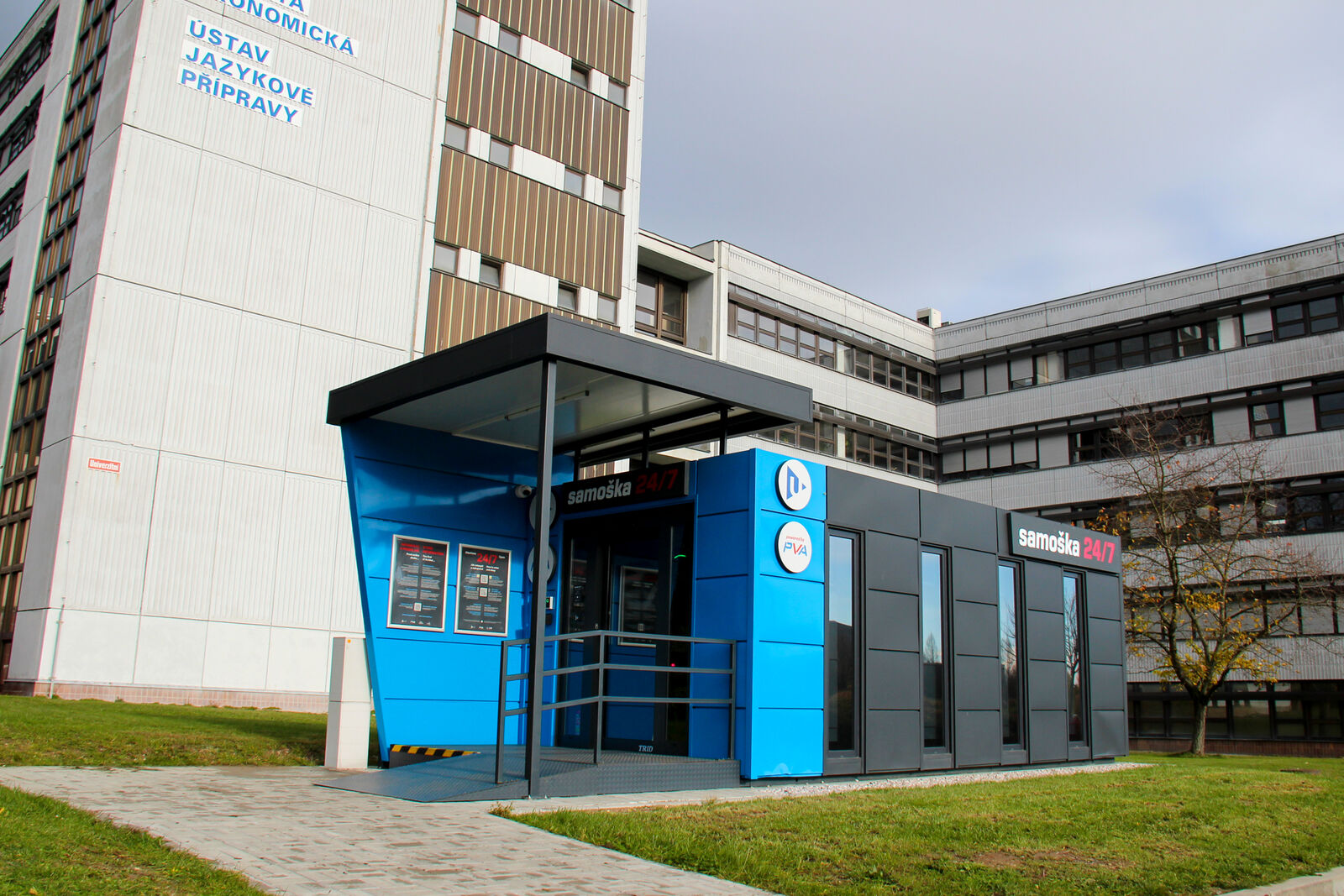 Prodejna má sloužit nejen studujícím a zaměstnancům, ale i veřejnosti. Do Samošky 24/7, jak její název napovídá, mohou nakupující vejít každý den v kteroukoli hodinu. Na jaře 2024 šlo při otevření o první obchod svého druhu v republice. Druhá kontejnerová prodejna v ČR byla otevřena letos v říjnu v kampusu Jihočeské univerzity v Českých Budějovicích. Kamenných prodejen s provozní dobou 24/7 využívající technologie od P.V.A. systems existuje v ČR několik desítek.