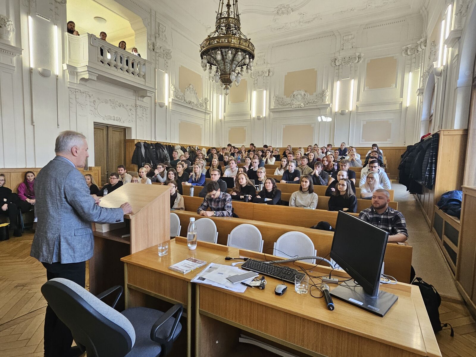 Přednáška, která se na půdě Fakulty právnické Západočeské univerzity v Plzni (FPR ZČU) konala ve čtvrtek 28. listopadu, se setkala s velkým zájmem ze strany studujících napříč všemi ročníky. Účastníci přednášky zaplnili posluchárnu i galerii nad ní.