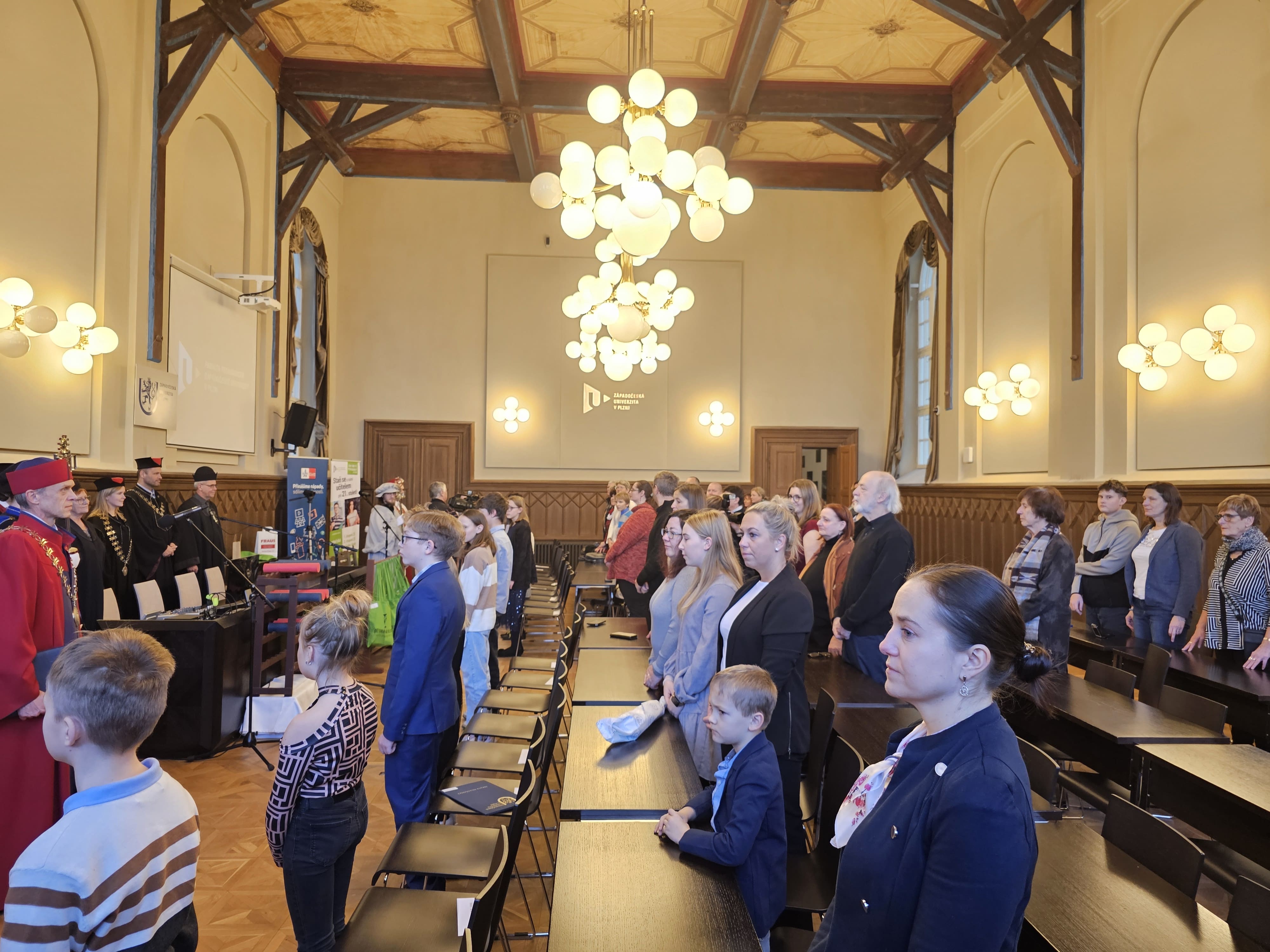 Děkan Pavel Mentlík poděkoval rodičům za to, že vedou své děti na cestě za věděním. „Jednou to budete právě vy, kdo bude posouvat lidské poznání a věřím, že výsledkem vašeho bádání budou závěry, na které jsme my teď ještě ani nepomysleli. Doufám, že pobyt na Dětské univerzitě pro vás byl skibidi aura 99+,“ uzavřel jazykem mladé generace děkan.
