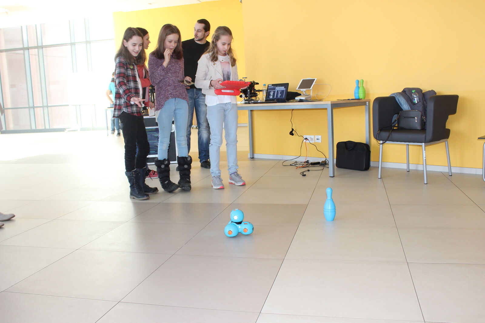 Školáci se podívali také do několika laboratoří. Na katedře informatiky a výpočetní techniky je nadchla virtuální realita, když si za pomoci speciálních brýlí zkusili malovat do prostoru různé 3D objekty. Další zatím objevovali možnosti interaktivního pískoviště se speciálním senzorem Kinect. V neurolaboratoři si mohli otestovat rychlost svých reakcí pomocí rukou i nohou a nechat si změřit mozkovou aktivitu. Na katedře kybernetiky na ně čekali robotičtí artisté – míč balancující na hraně, inverzní kyvadlo či robot jménem Alice, který si umí sám podat kovovou kuličku a vhodit ji na kuličkovou dráhu.
