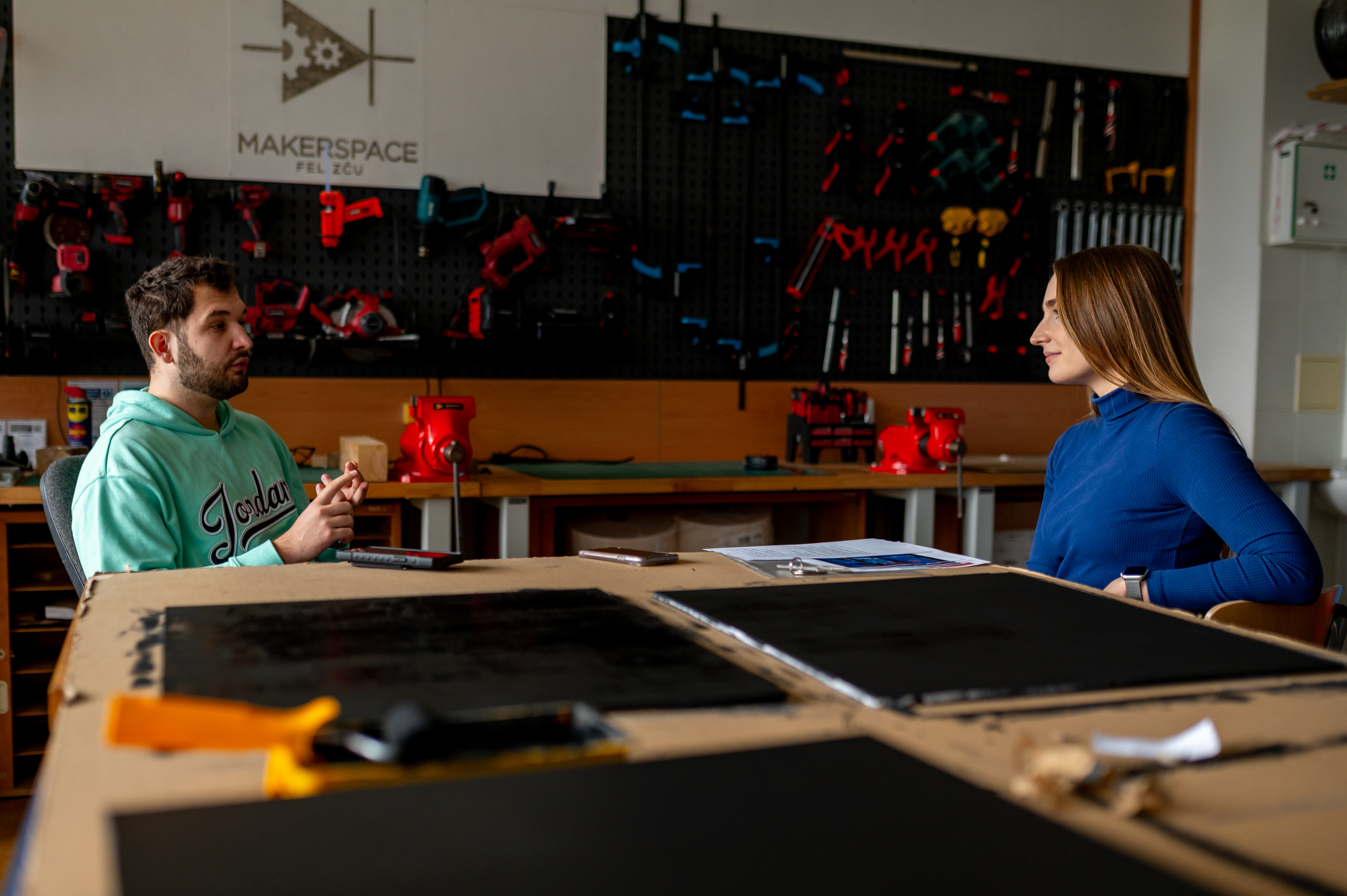 Překvapil mě přístup a zázemí. Je tu posilovna, parkoviště, zázemí pro učení. Třeba teď jsme v Makerspace, ty tu máme dva. Ten nahoře je elektrodílna s 3D tiskárnami a dole je těžká dílna s bruskami a nářadím. Můžeme tu ty naše produkty a naše projekty, na kterých děláme, dotáhnout do dokonalosti. Můžeme si vyhrát s designem. A co se týče jídla, dá se v menze vybrat. Vždycky se dá vybrat thajská nebo pizza.