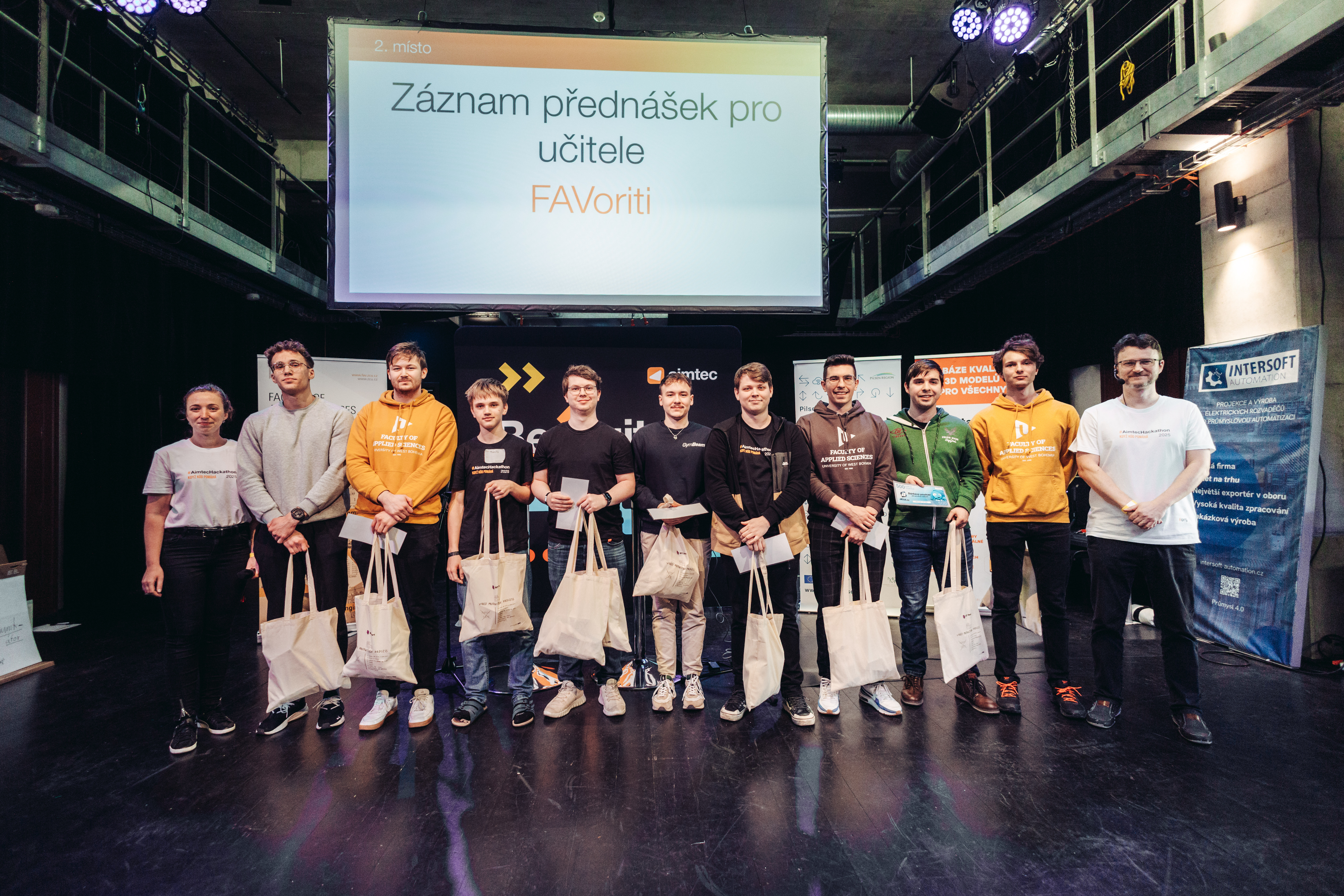 Druhé místo a cenu veřejnosti získal tým FAVoriti složený z osmi studentů Fakulty aplikovaných věd ZČU, studenta Fakulty pedagogické ZČU a studenta Mikulášského gymnázia v Plzni. Jejich projekt měl za cíl zjednodušit studium dlouhodobě nemocným studentům a jejich učitelům. S využitím umělé inteligence vytvořili platformu, která na jednom místě nabízí záznamy přednášek, jejich shrnutí, vědomostní kvízy a veškeré materiály k probírané látce. „Naším cílem je, aby se žáci mohli efektivně učit kdykoli a odkudkoli, aniž by byli závislí na ručně psaných poznámkách nebo nutnosti složitě získávat zameškané učivo,” řekl leader týmu Lukáš Vlček.