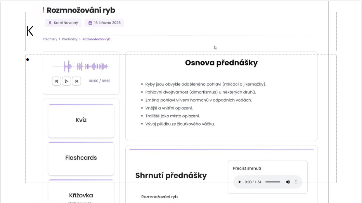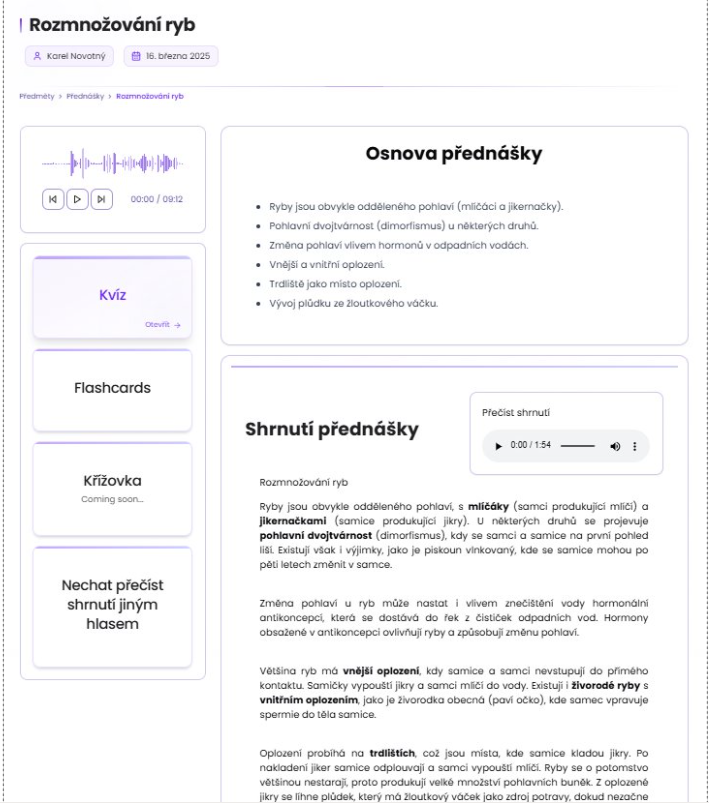 V současné době jako základní informační zdroj slouží mp3 zvuková nahrávka přednášky, z níž systém vytváří textový souhrn a další materiály, ale do budoucna autoři aplikace uvažují nad rozšířením i o další zdroje dat. „Přednáška by měla být v ideálním případě nahraná v klidném prostředí tak, aby byl hlas vyučujícího zřetelně slyšet a technologie dokázala správně rozpoznat, o čem vyučující mluví. Moderní speech-to-text technologie si nicméně dokážou s jistou úrovní hluku poradit,” dodal Lukáš.