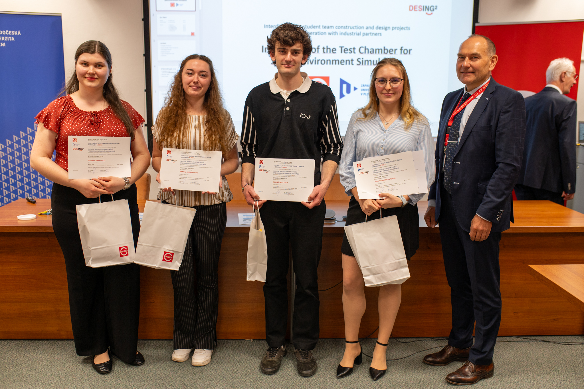 Co mají společného strojař, ekonom, zdravotník a designér? Nejedná se o začátek vtipu, ale o mezifakultní soutěž, která se zaměřuje na hledání řešení technologických problémů projektů zadaných od konkrétních firem z regionu. Studující a vyučující se ve čtvrtek 24. dubna sešli na Fakultě strojní Západočeské univerzity v Plzni (FST ZČU), aby zde zakončili 21. ročník studentské soutěže DESING+ a první ročník její pokročilejší varianty DESING².