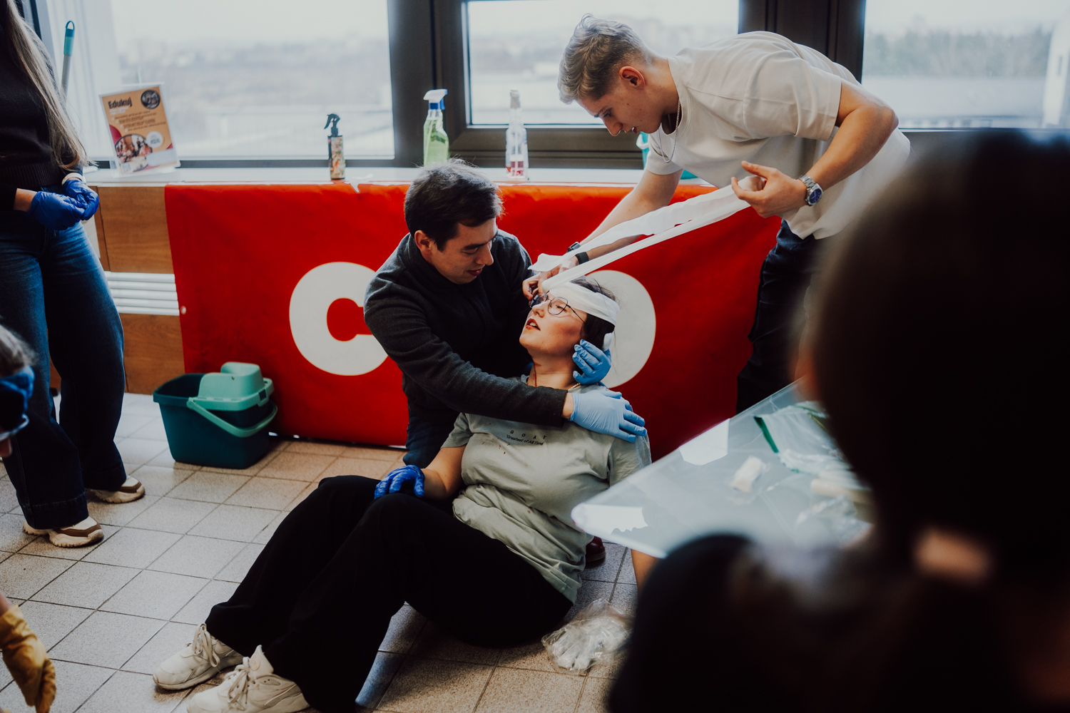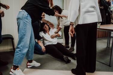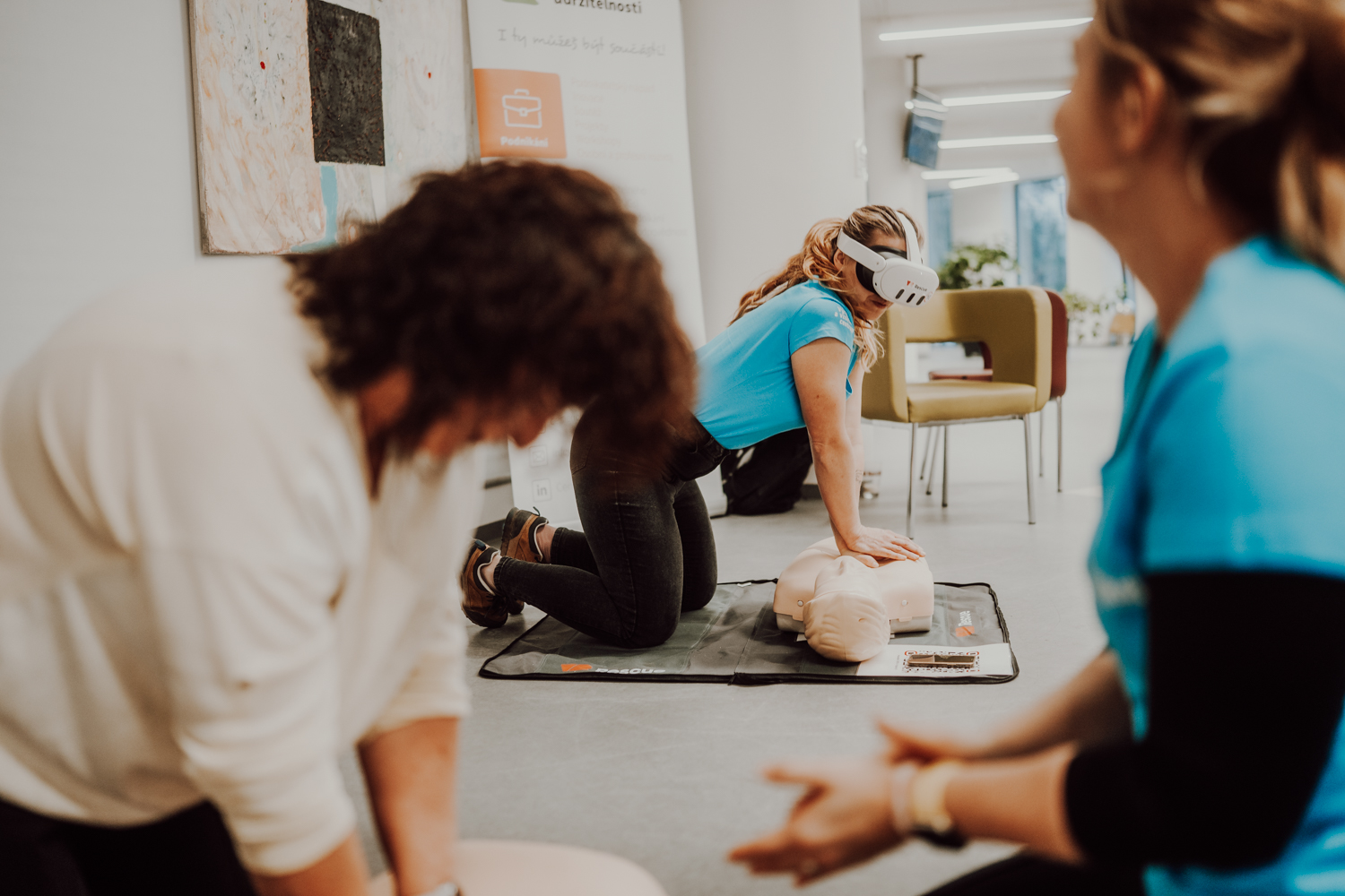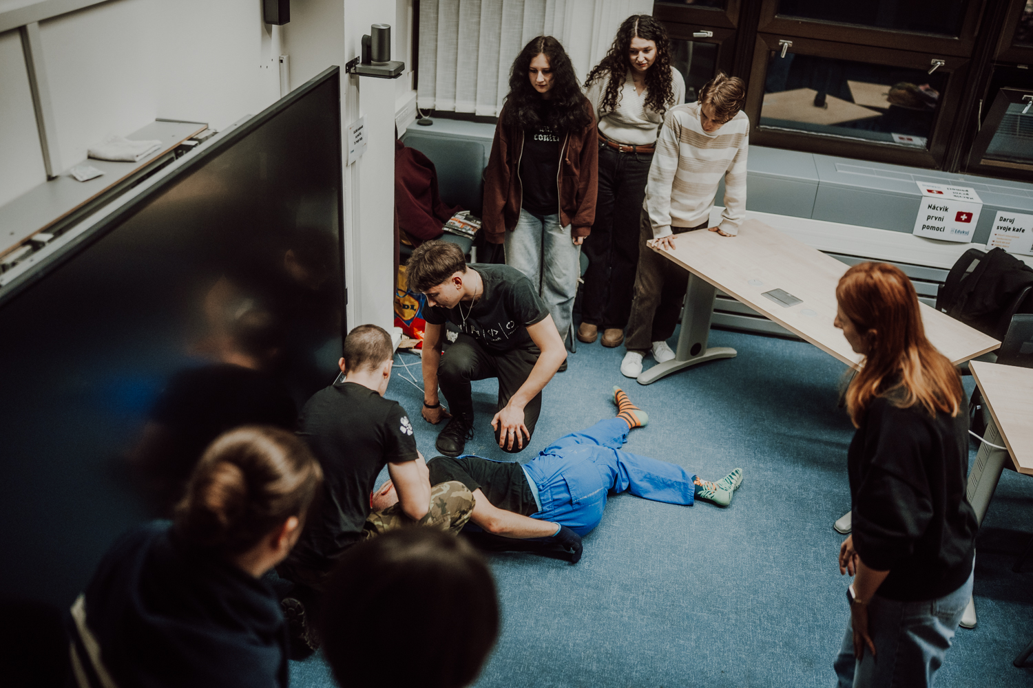 At the beginning of December, the premises of the Faculty of Economics and the Bory Library were briefly transformed into a place where lives were at stake. An injured cleaner with a laceration on her head after a fall, a repairman with an epileptic seizure, or a teacher with a sudden heart attack – the scenarios for first aid training were deliberately taken from real life for the participants. "In cooperation with the non-profit organization Edukuj, we prepared three rescue missions in which live actors very realistically simulated crisis situations that any of us may encounter in everyday life," said Petra Taušl Procházková, head of the Center for Entrepreneurship and Sustainability.