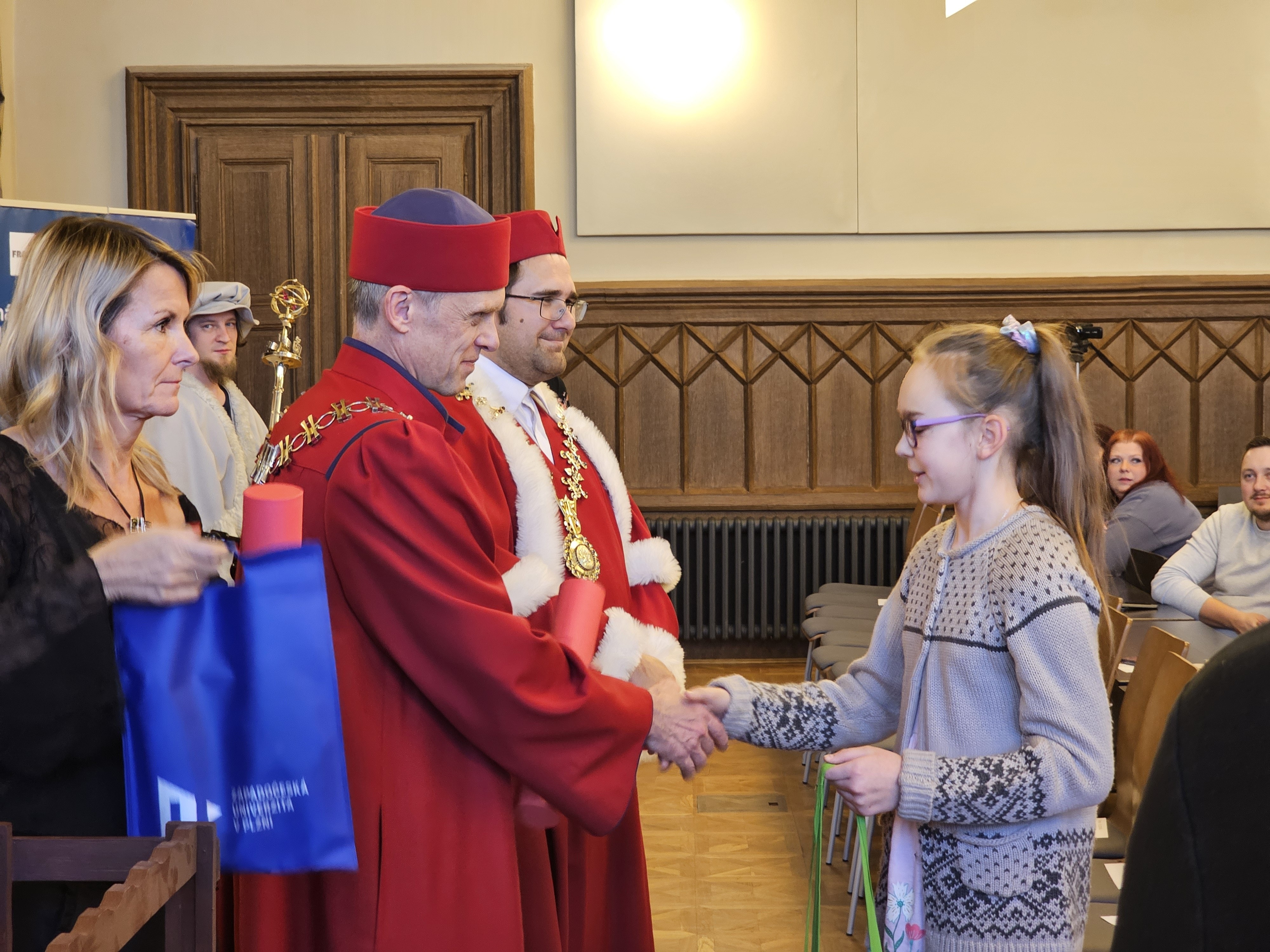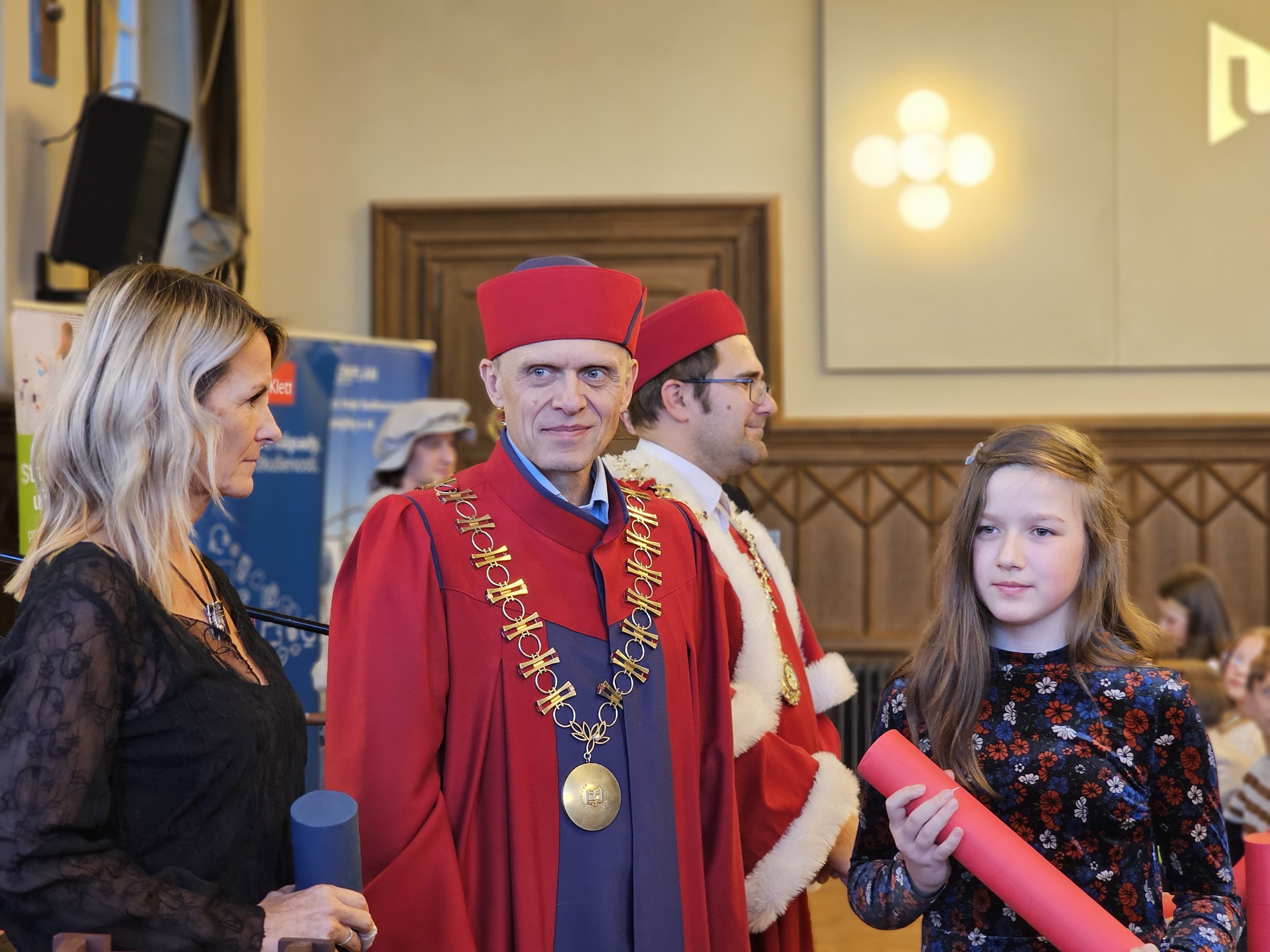 Úspěšní absolventi se sešli 10. února na slavnostním ceremoniálu v aule budovy FPE. Své certifikáty si tam děti převzaly v atmosféře podobné klasickým univerzitním promocím. „Chtěl bych poděkovat za skvělé zážitky, za získané zkušenosti a příjemně prožité chvíle na Západočeské univerzitě,“ řekl před publikem devítiletý Antonín Havránek. Děkan Fakulty pedagogické ZČU Pavel Mentlík využil slavnostního okamžiku, aby školákům a školačkám předal poselství Dětské univerzity i celé fakulty: „Jsem přesvědčen, že super schopností pro 21. století je schopnost učit se. Nejen zapamatovat si odpovědi, ale umět se ptát, hledat souvislosti a nebát se chyb. Důležité je tuto touhu po poznání nezastavovat, ale dál rozvíjet.“
